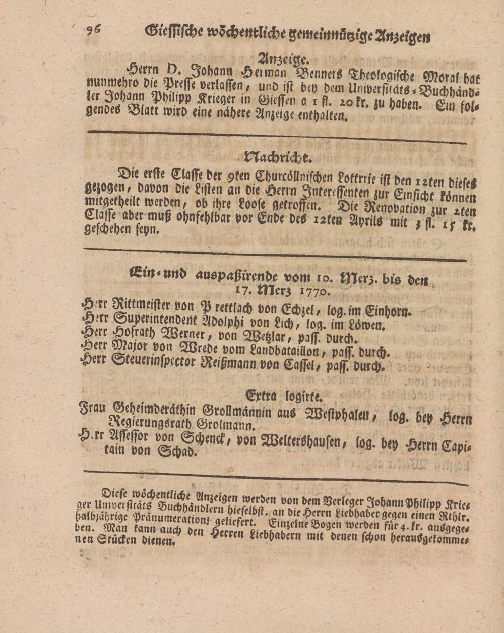 Giessische wöchentliche gemeinnützige Anzeigen und Nachrichten. 1764-1770