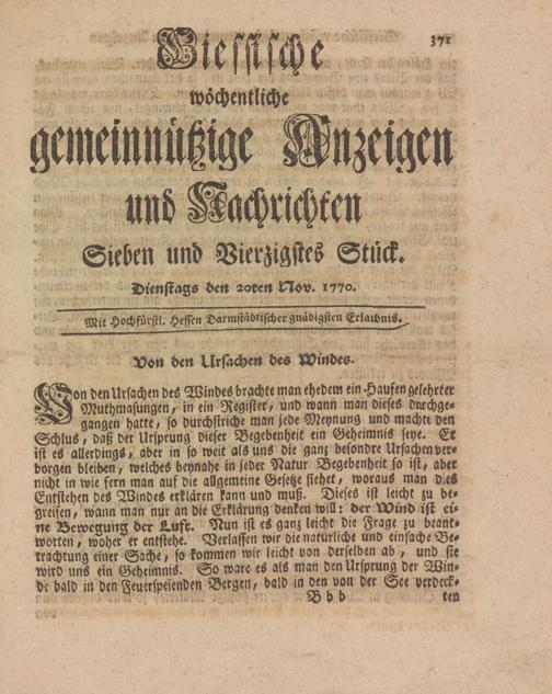 Giessische wöchentliche gemeinnützige Anzeigen und Nachrichten. 1764-1770