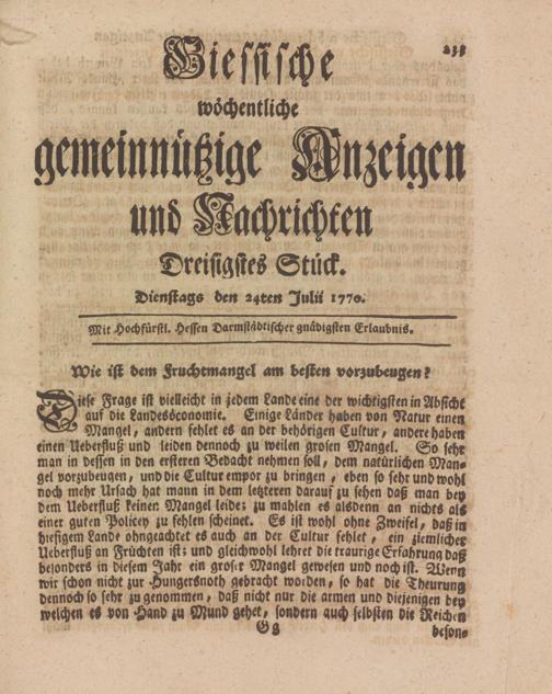 Giessische wöchentliche gemeinnützige Anzeigen und Nachrichten. 1764-1770
