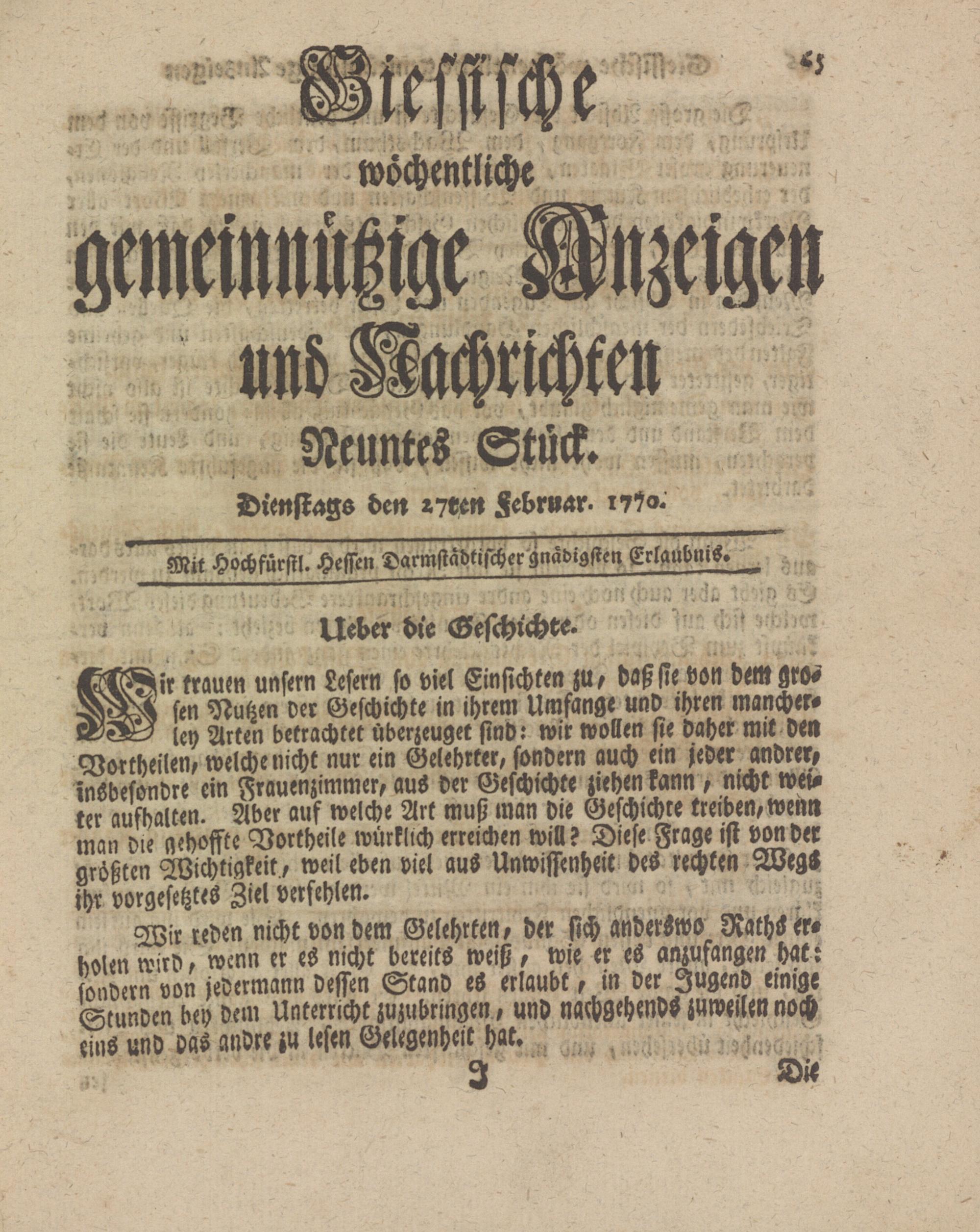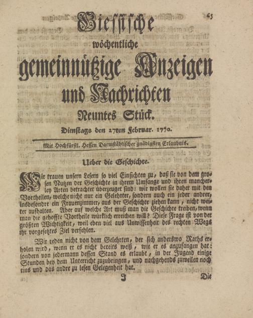 Giessische wöchentliche gemeinnützige Anzeigen und Nachrichten. 1764-1770