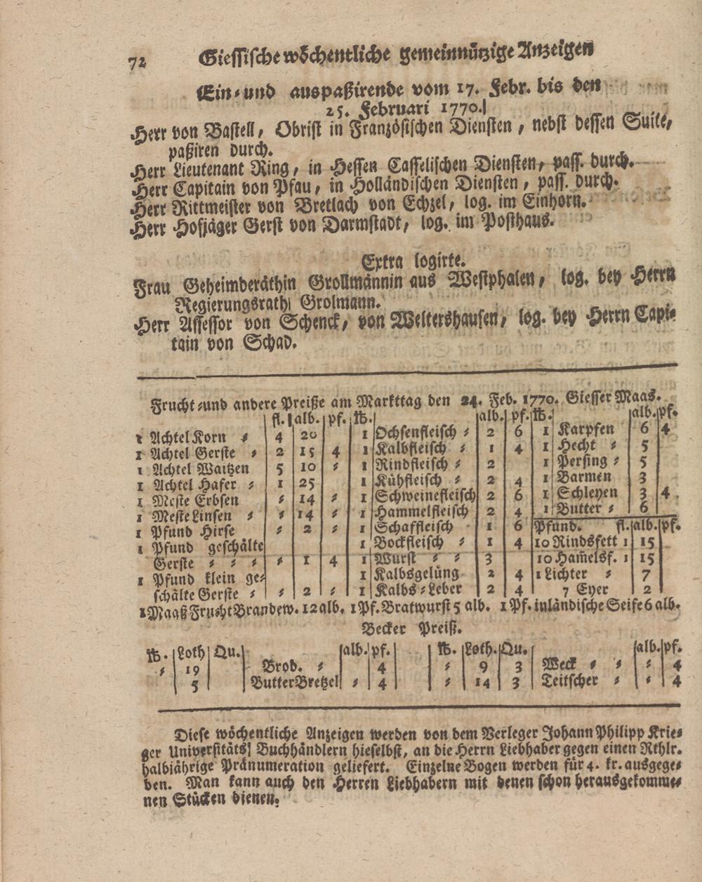 Giessische wöchentliche gemeinnützige Anzeigen und Nachrichten. 1764-1770