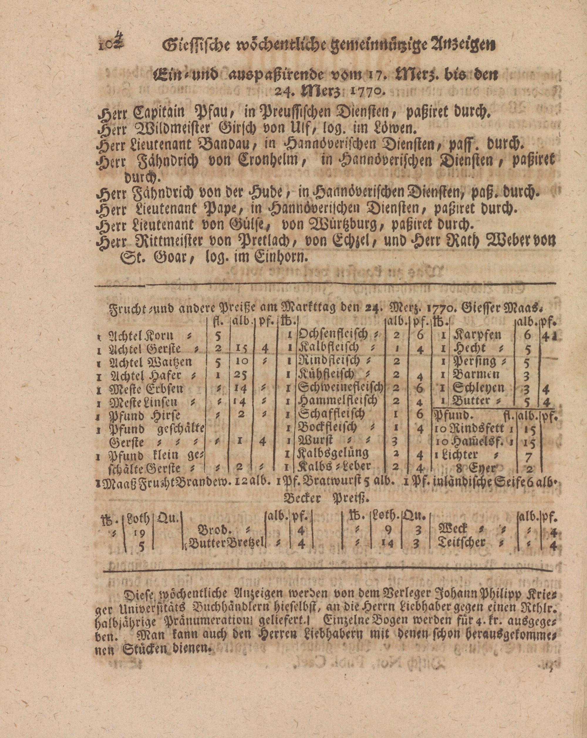 Giessische wöchentliche gemeinnützige Anzeigen und Nachrichten. 1764-1770