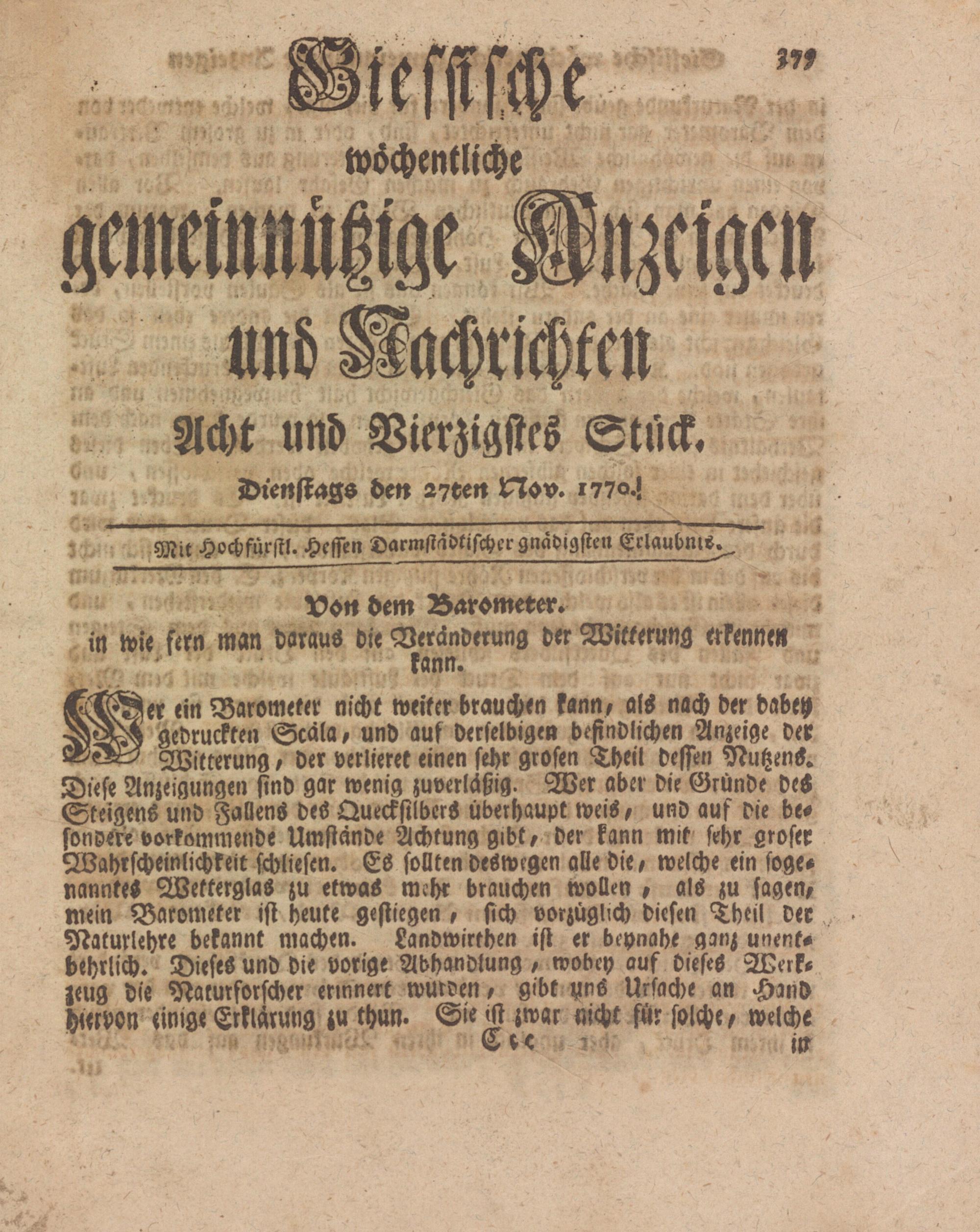Giessische wöchentliche gemeinnützige Anzeigen und Nachrichten. 1764-1770