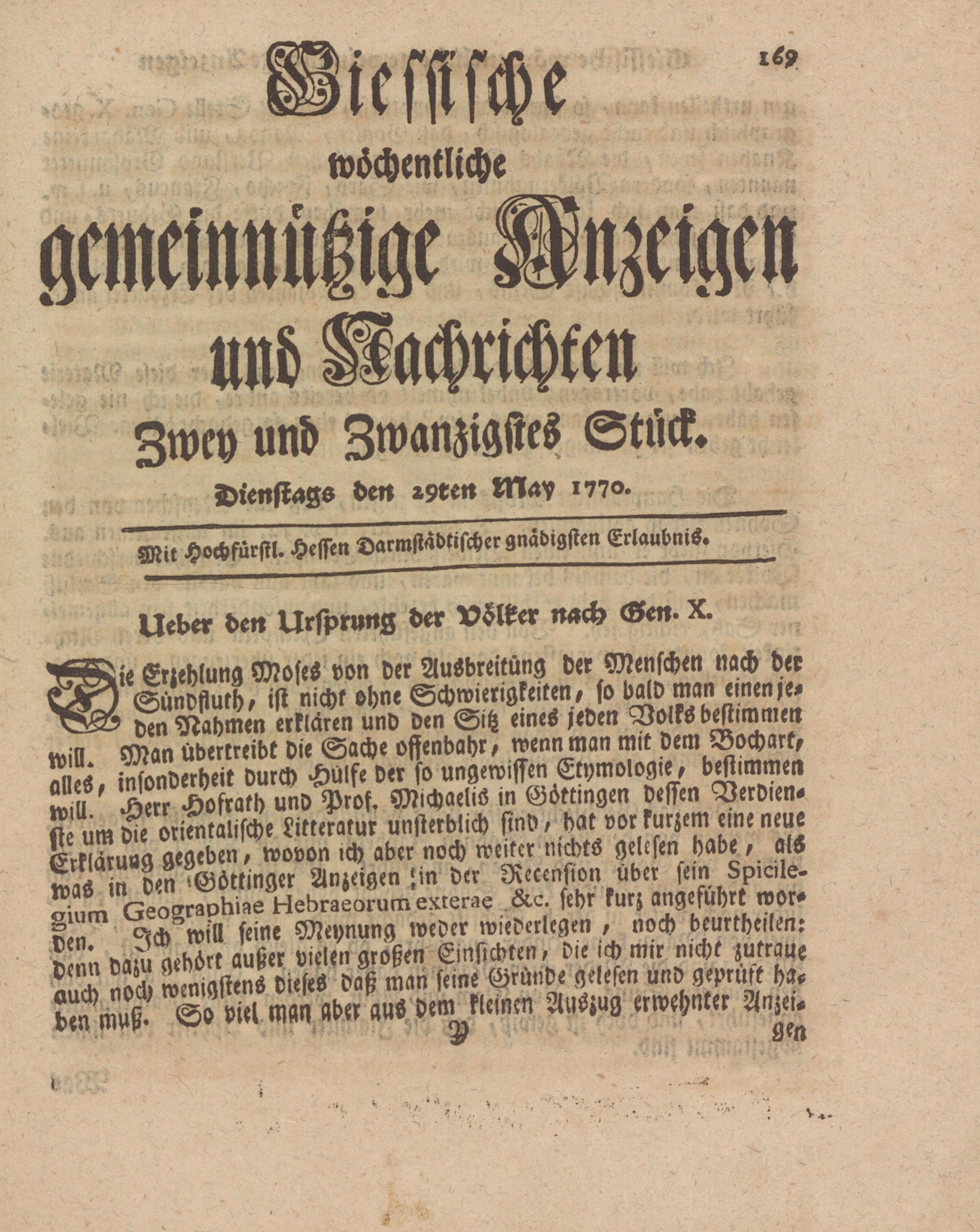Giessische wöchentliche gemeinnützige Anzeigen und Nachrichten. 1764-1770