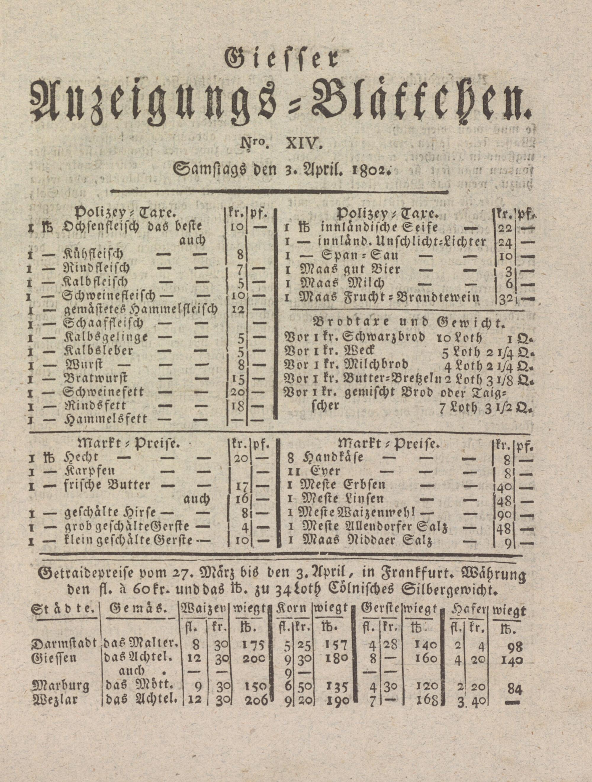 Giesser Anzeigeblatt. 1800-1839