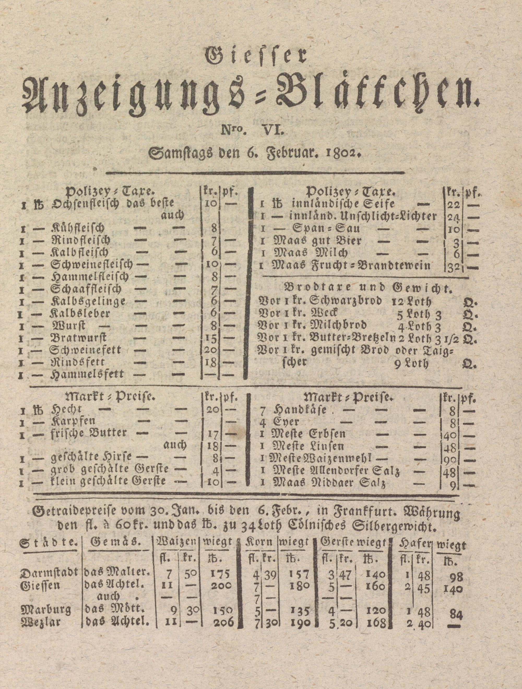 Giesser Anzeigeblatt. 1800-1839