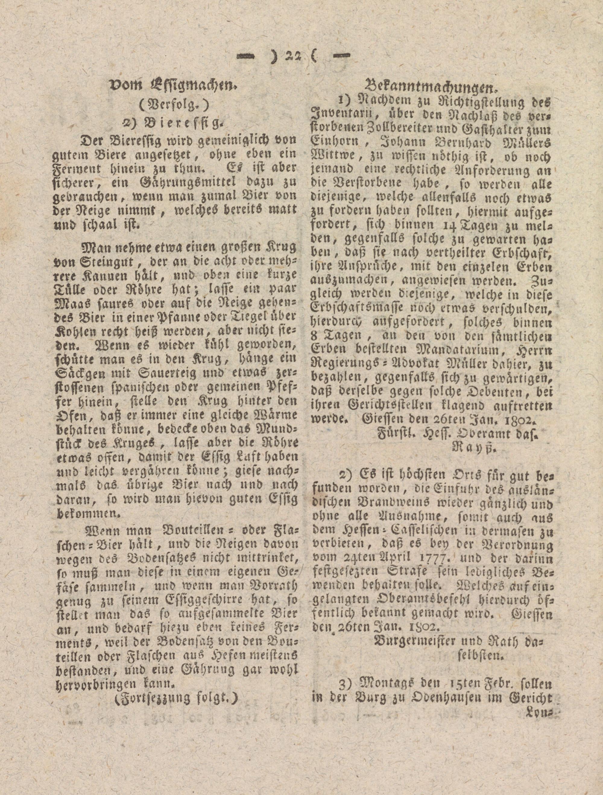 Giesser Anzeigeblatt. 1800-1839