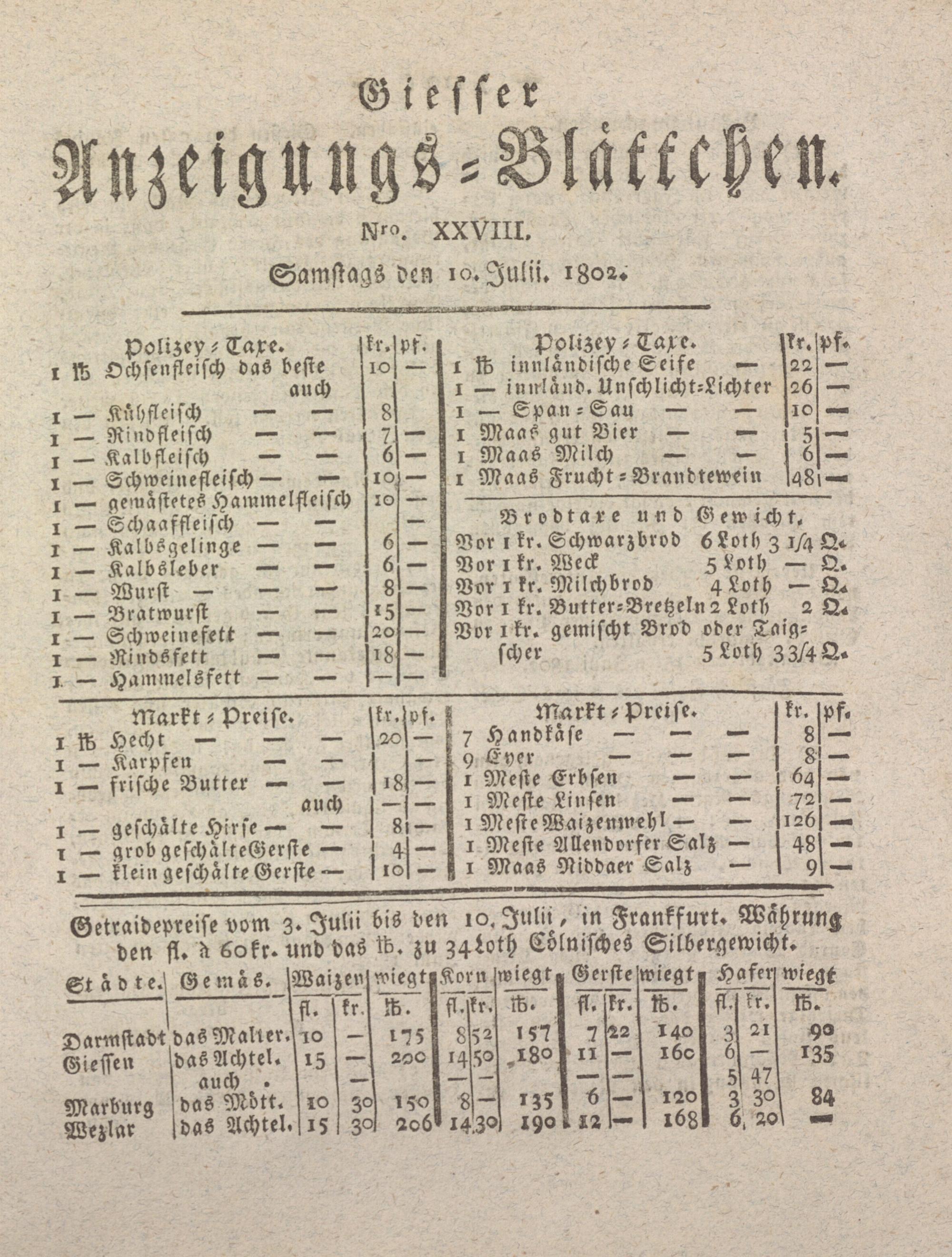 Giesser Anzeigeblatt. 1800-1839