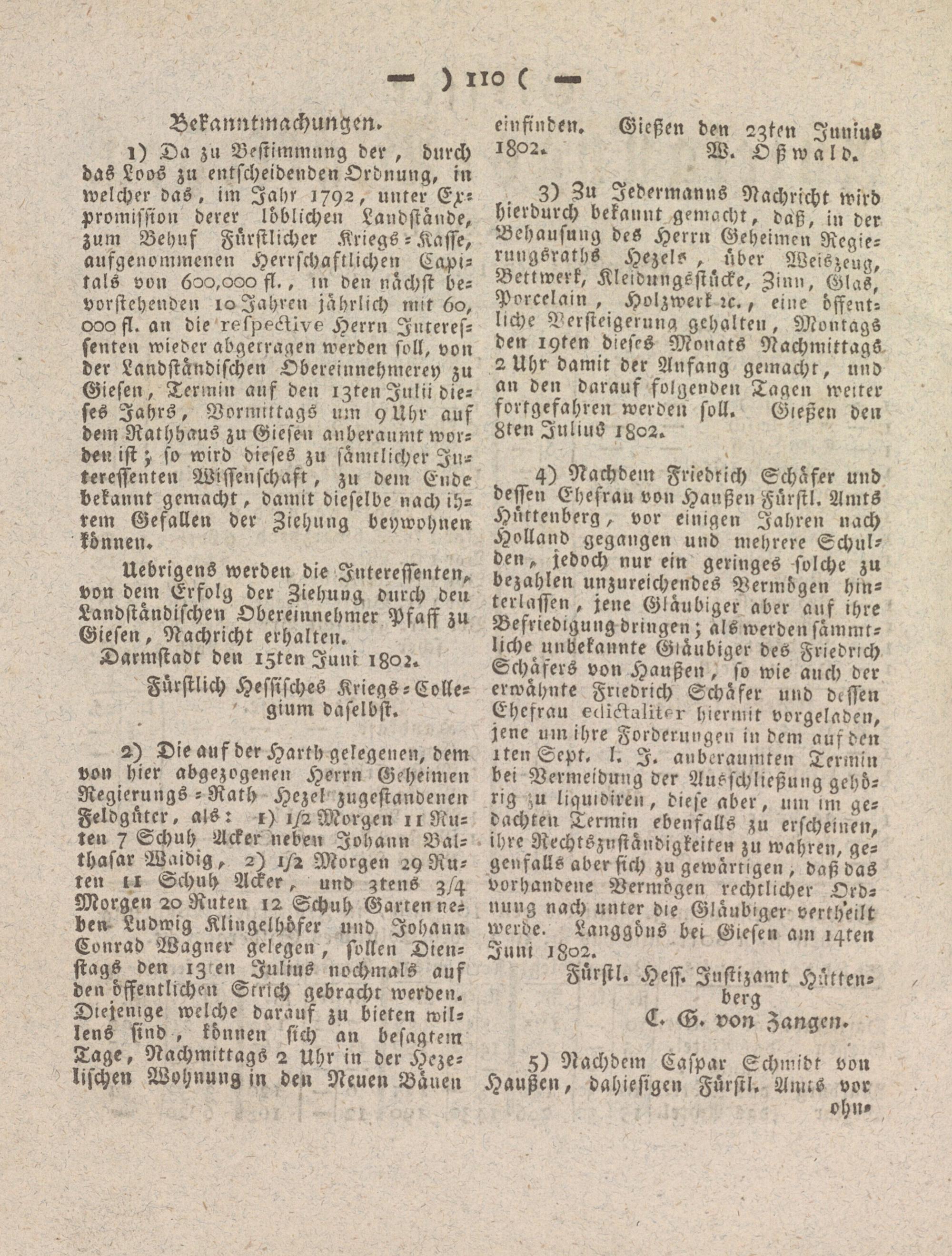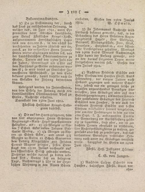 Giesser Anzeigeblatt. 1800-1839