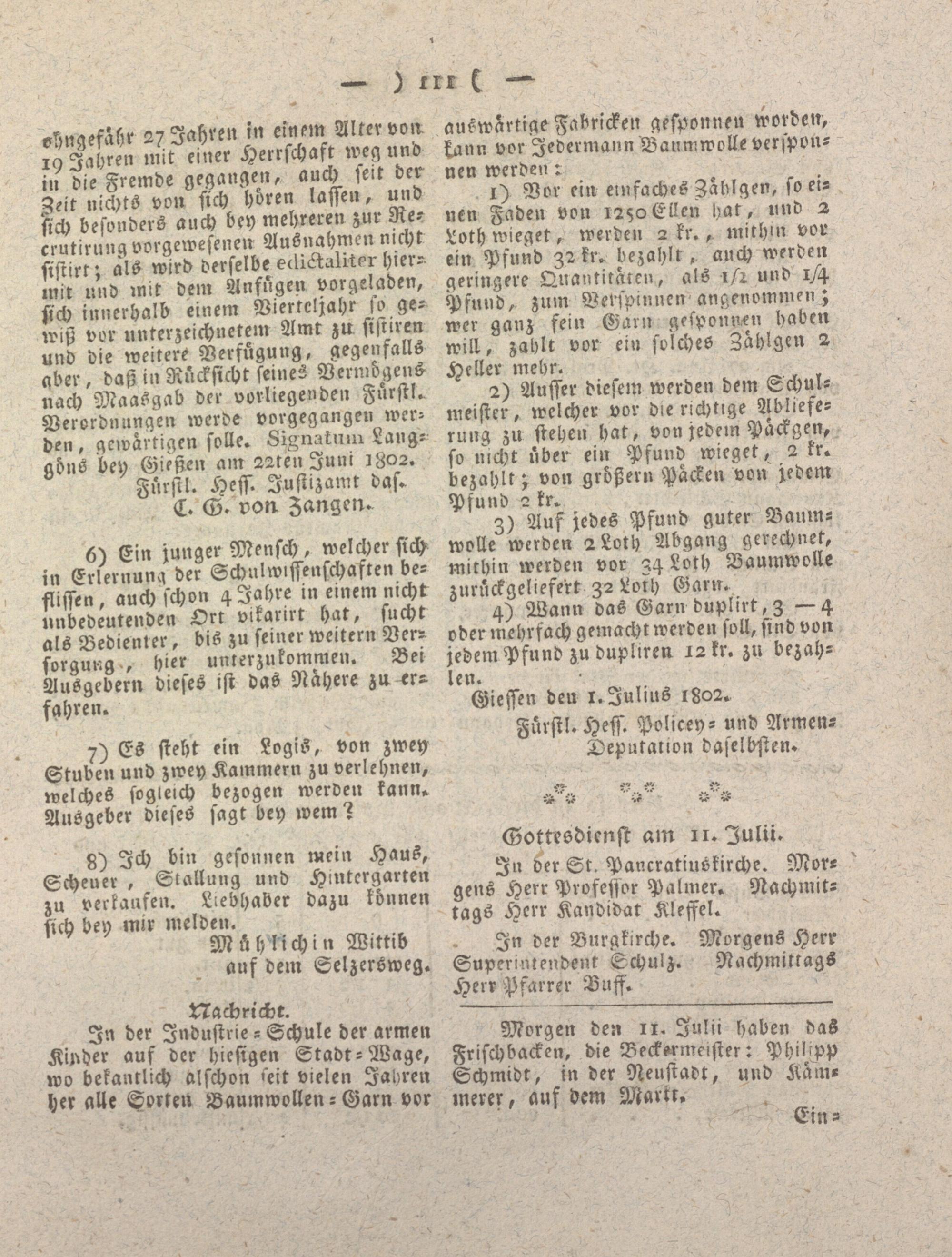 Giesser Anzeigeblatt. 1800-1839