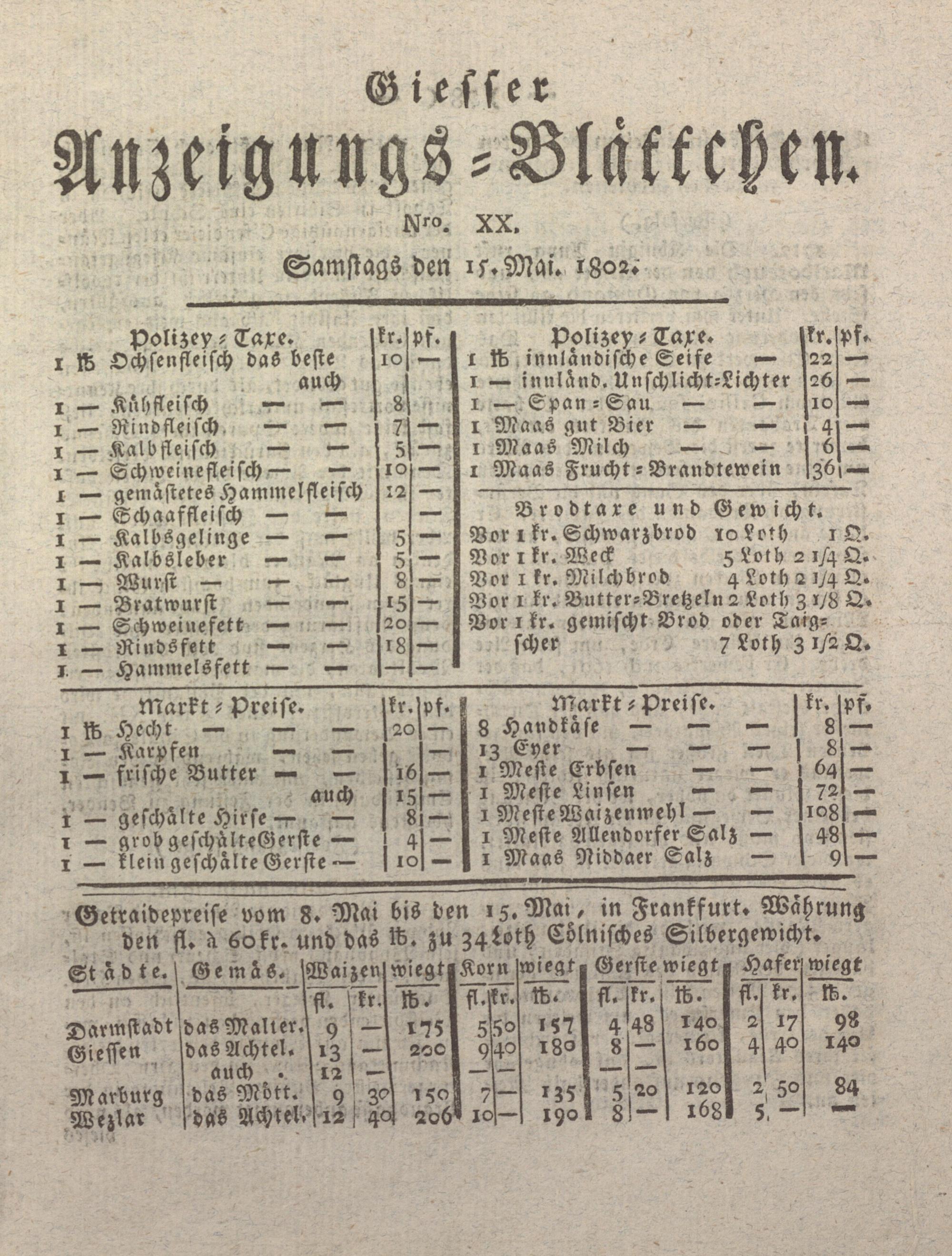 Giesser Anzeigeblatt. 1800-1839