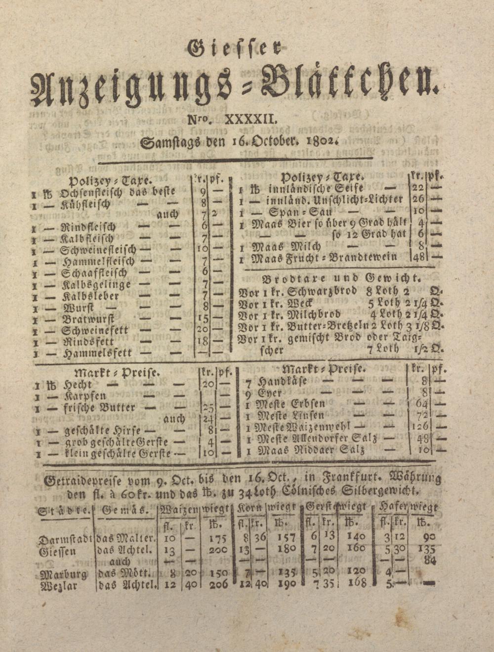 Giesser Anzeigeblatt. 1800-1839