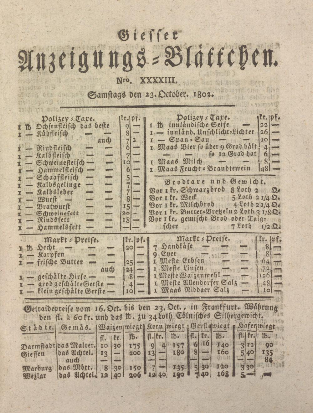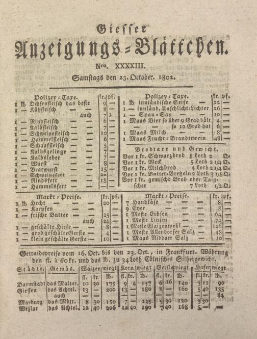 Giesser Anzeigeblatt. 1800-1839