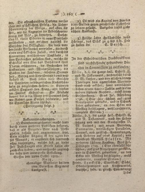 Giesser Anzeigeblatt. 1800-1839