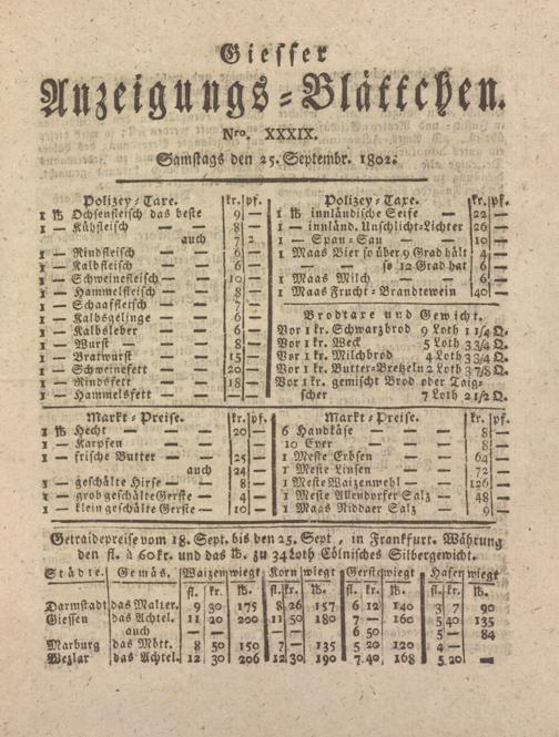 Giesser Anzeigeblatt. 1800-1839