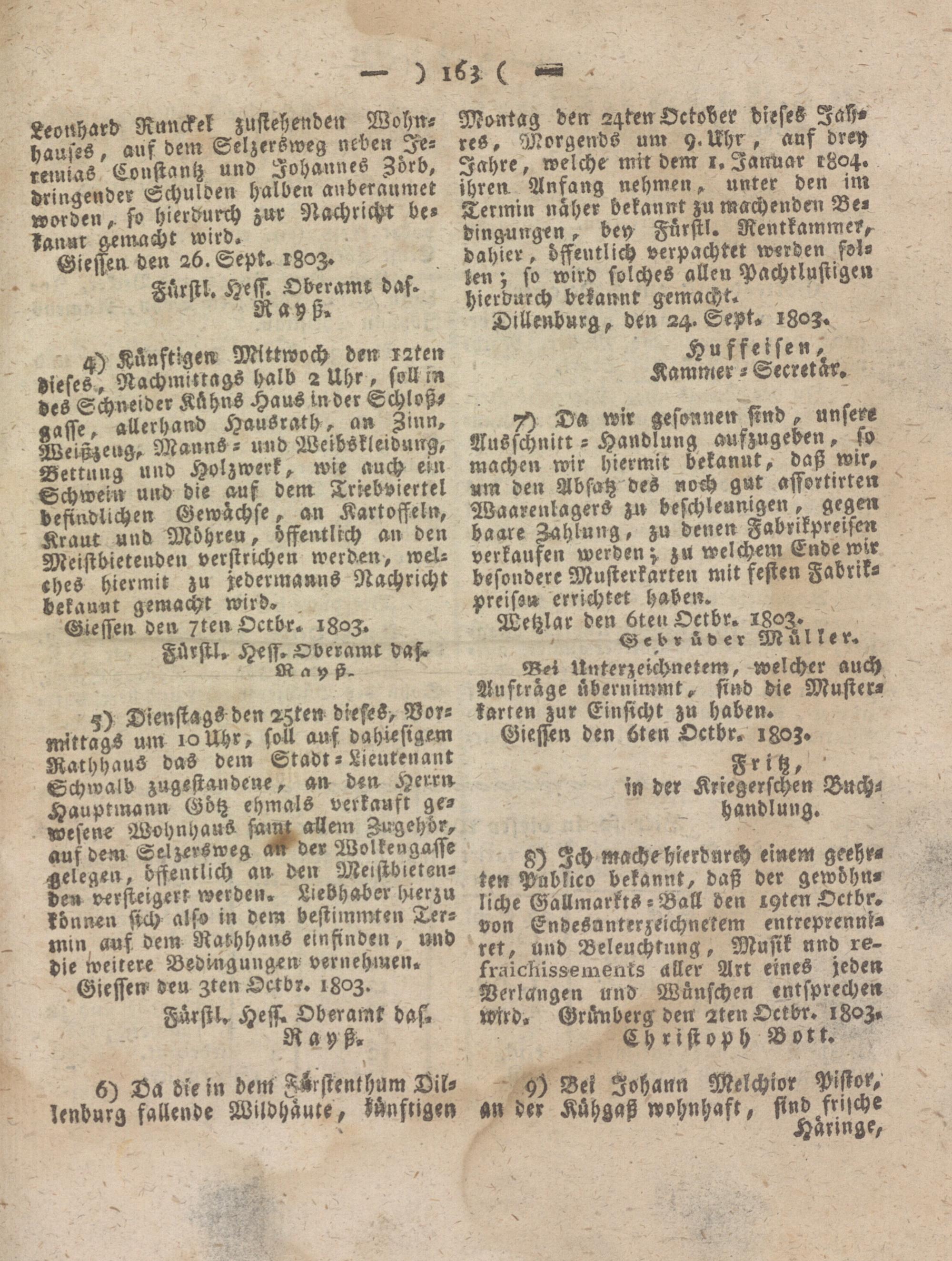 Giesser Anzeigeblatt. 1800-1839