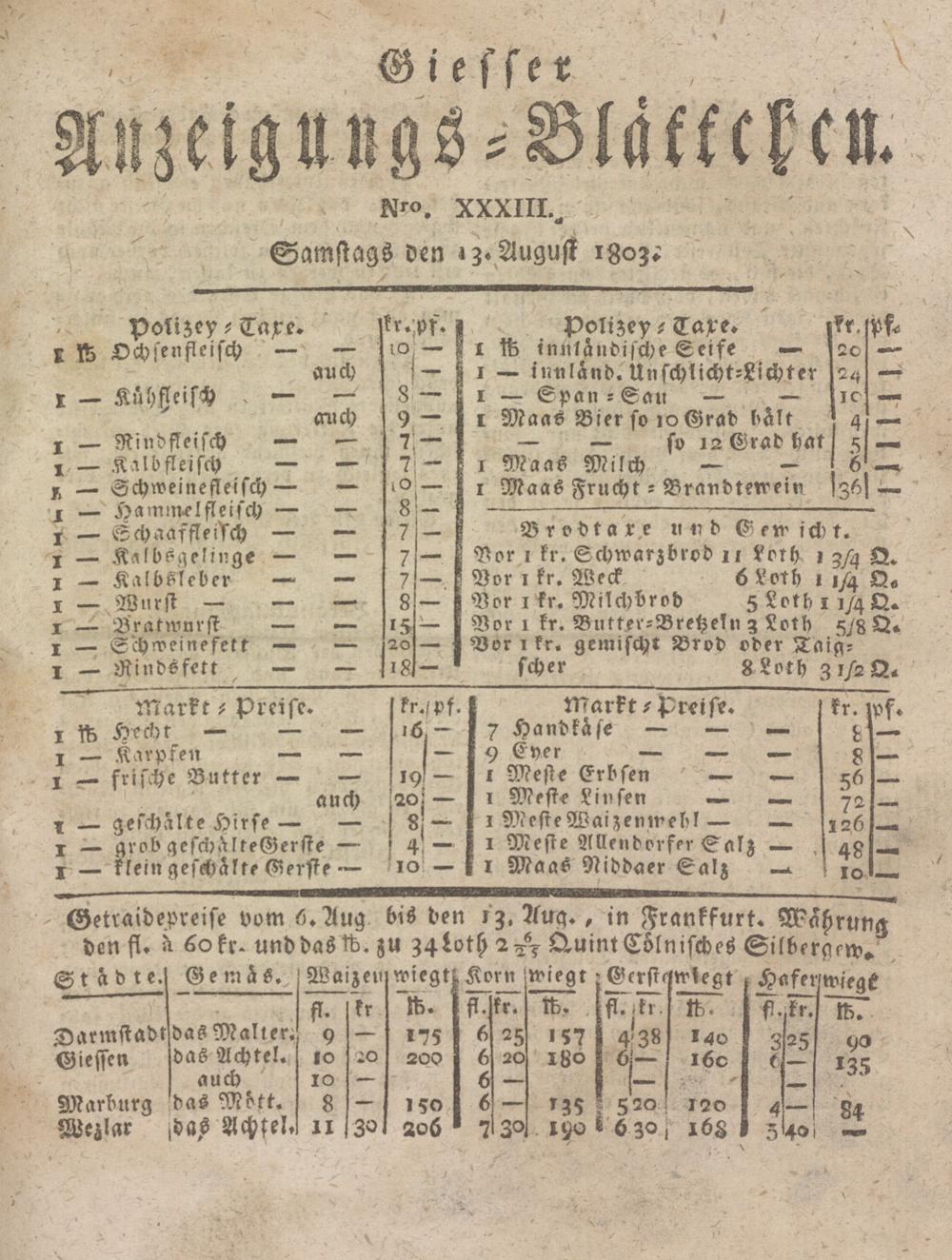 Giesser Anzeigeblatt. 1800-1839