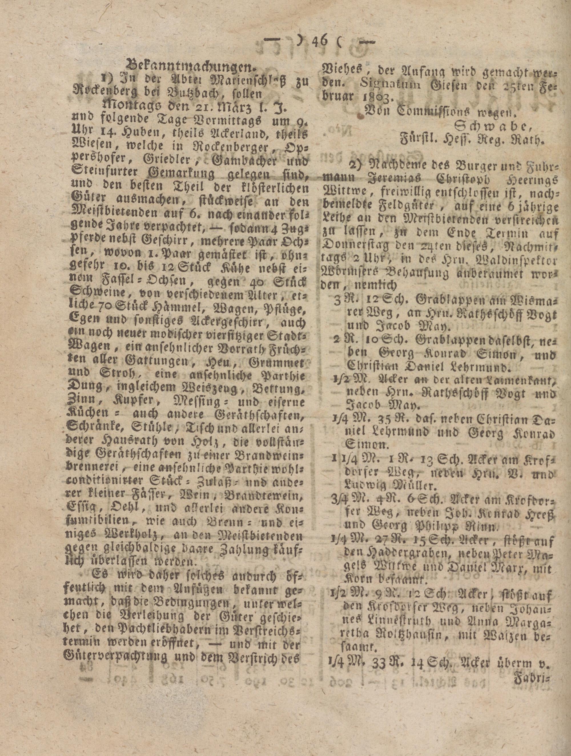 Giesser Anzeigeblatt. 1800-1839