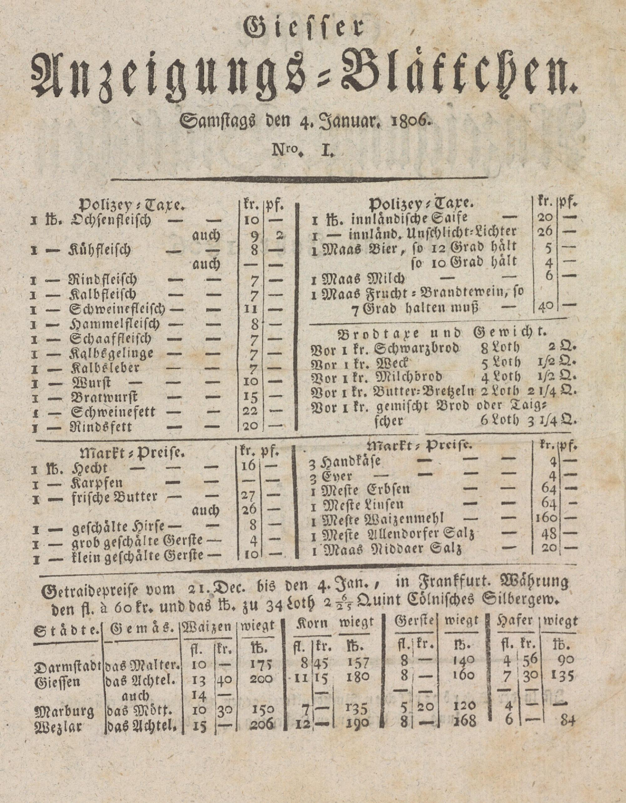 Giesser Anzeigeblatt. 1800-1839