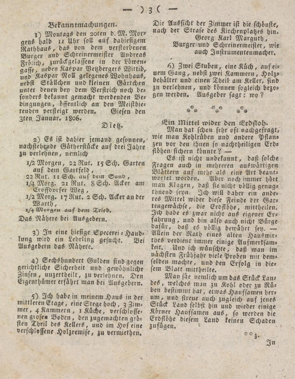 Giesser Anzeigeblatt. 1800-1839