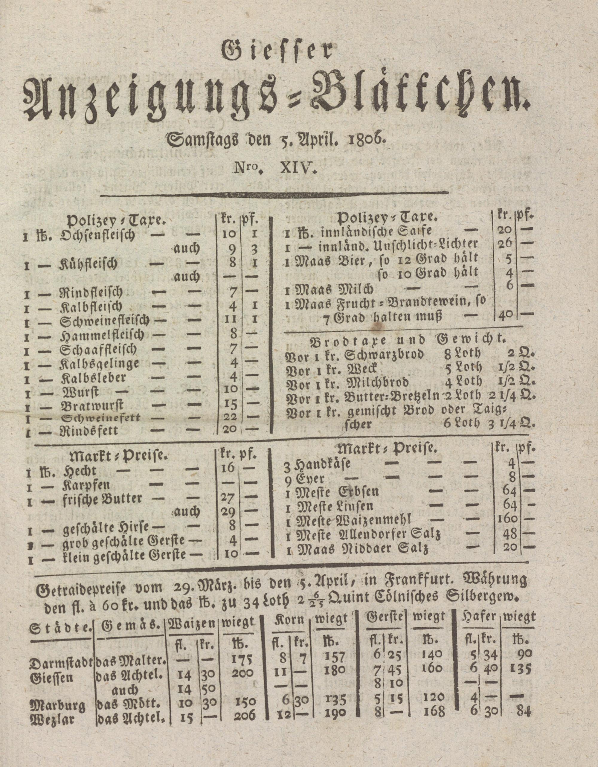 Giesser Anzeigeblatt. 1800-1839