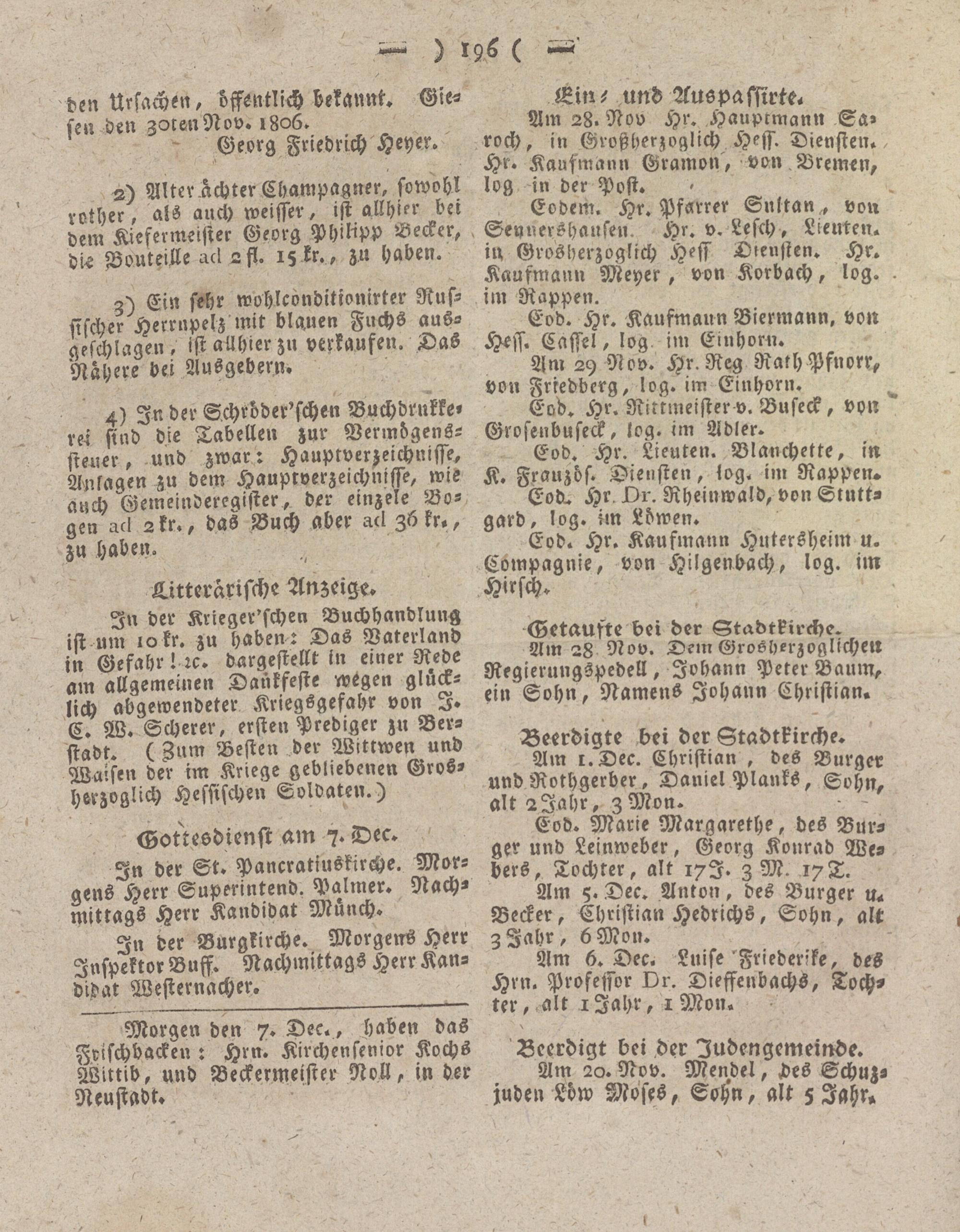 Giesser Anzeigeblatt. 1800-1839