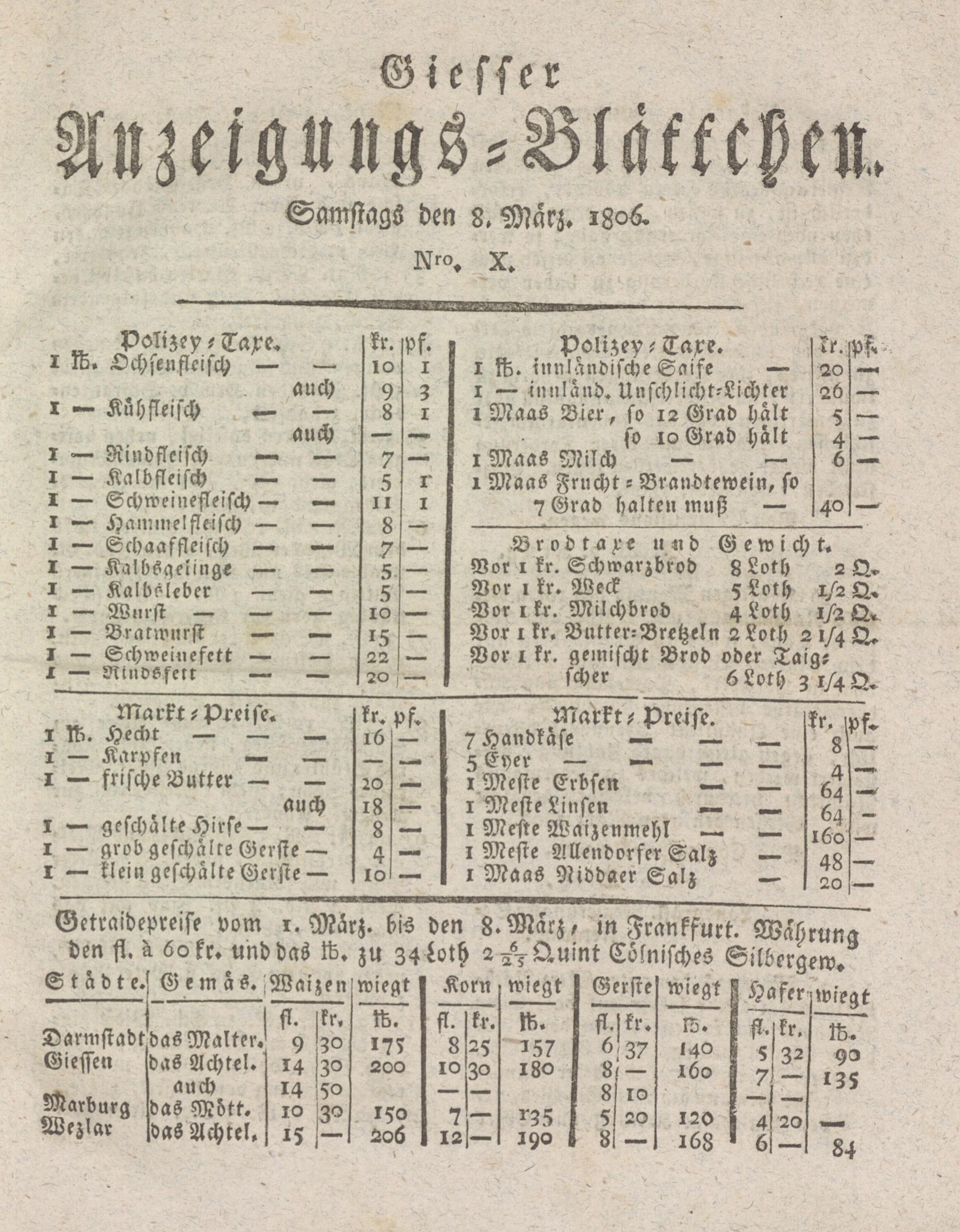 Giesser Anzeigeblatt. 1800-1839