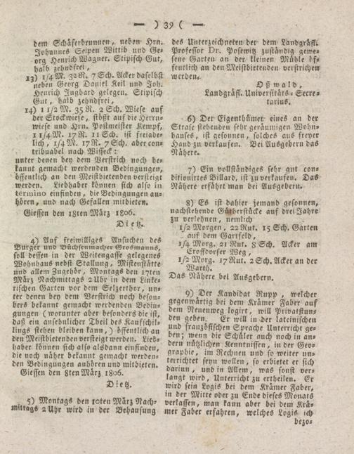 Giesser Anzeigeblatt. 1800-1839