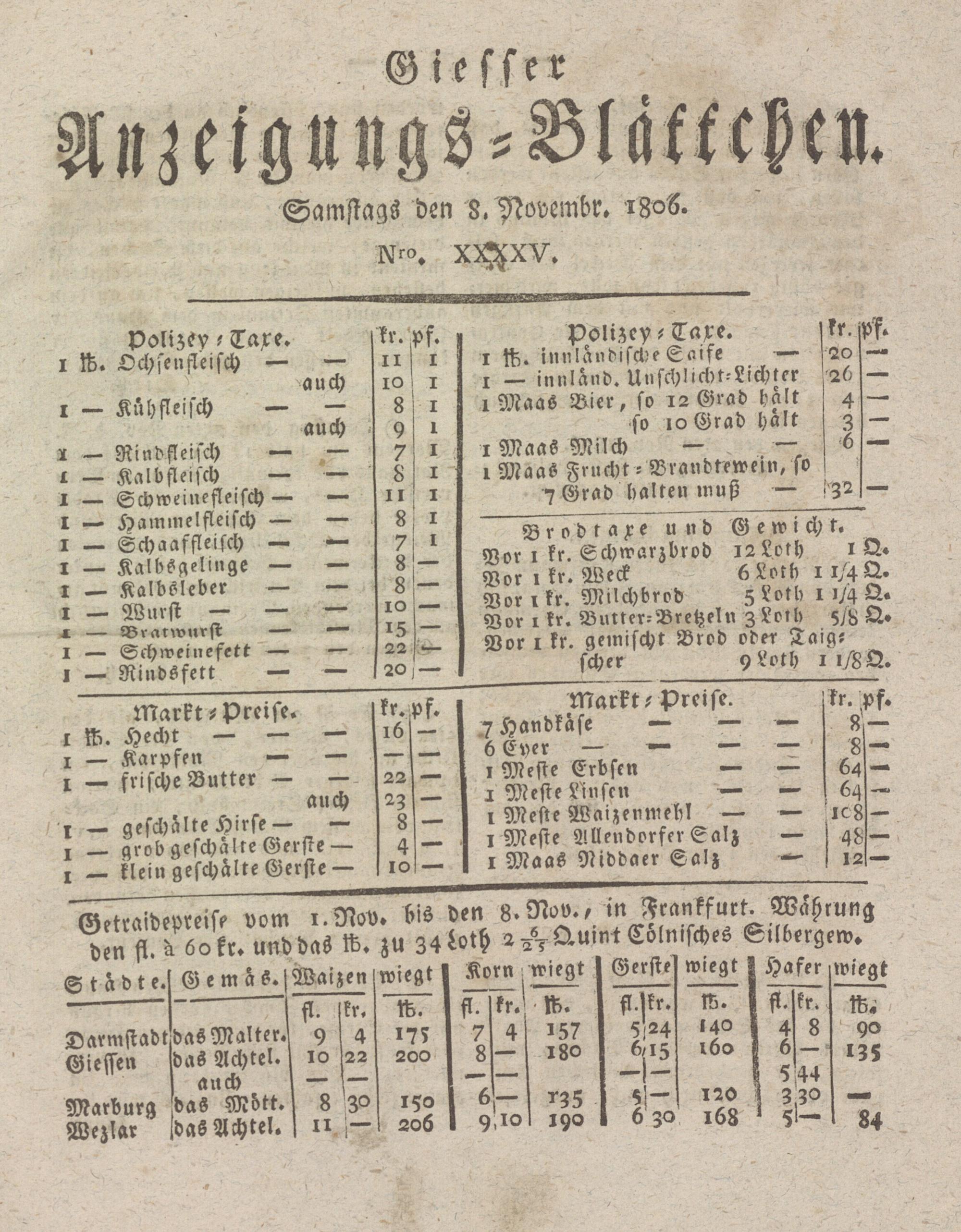 Giesser Anzeigeblatt. 1800-1839
