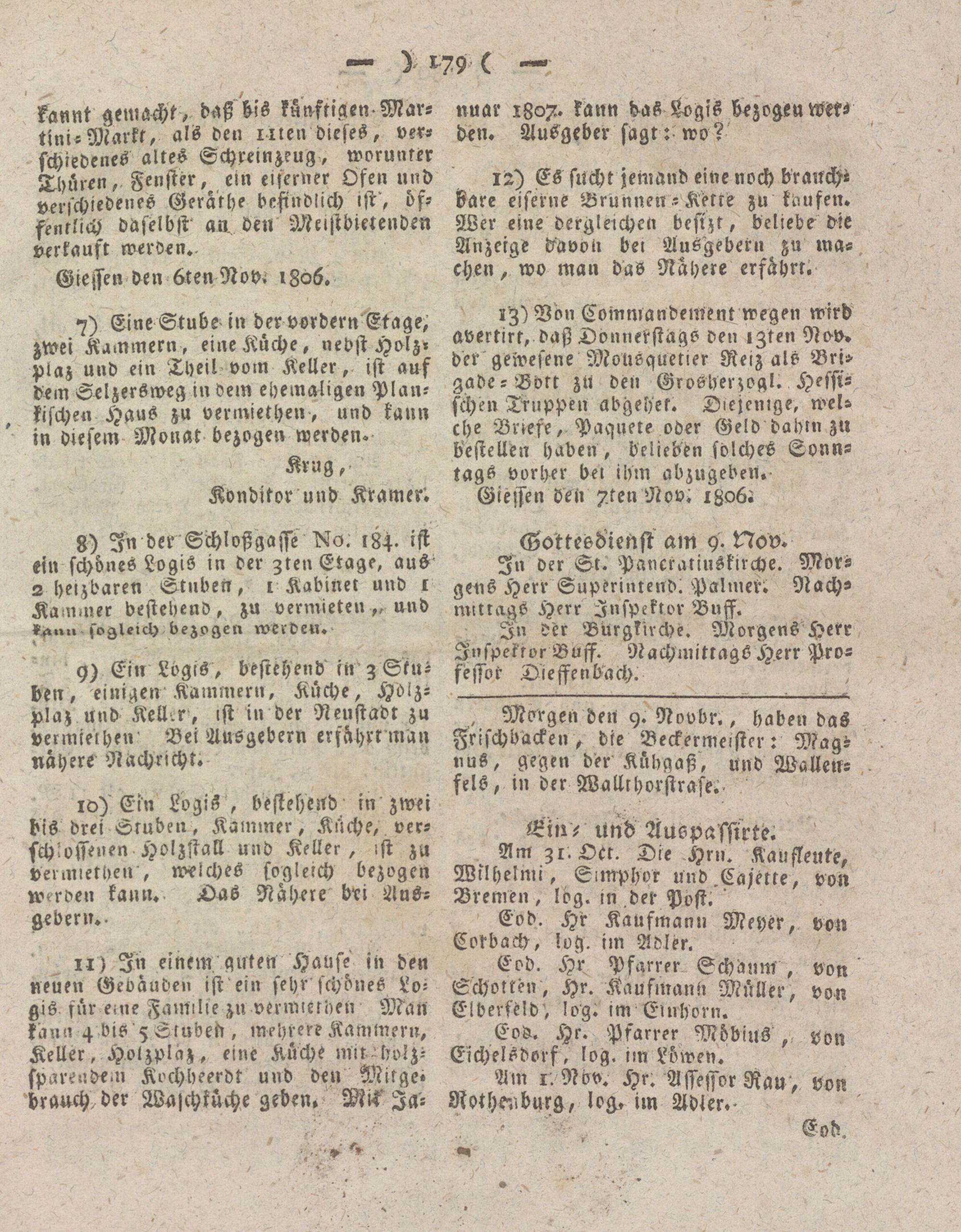 Giesser Anzeigeblatt. 1800-1839