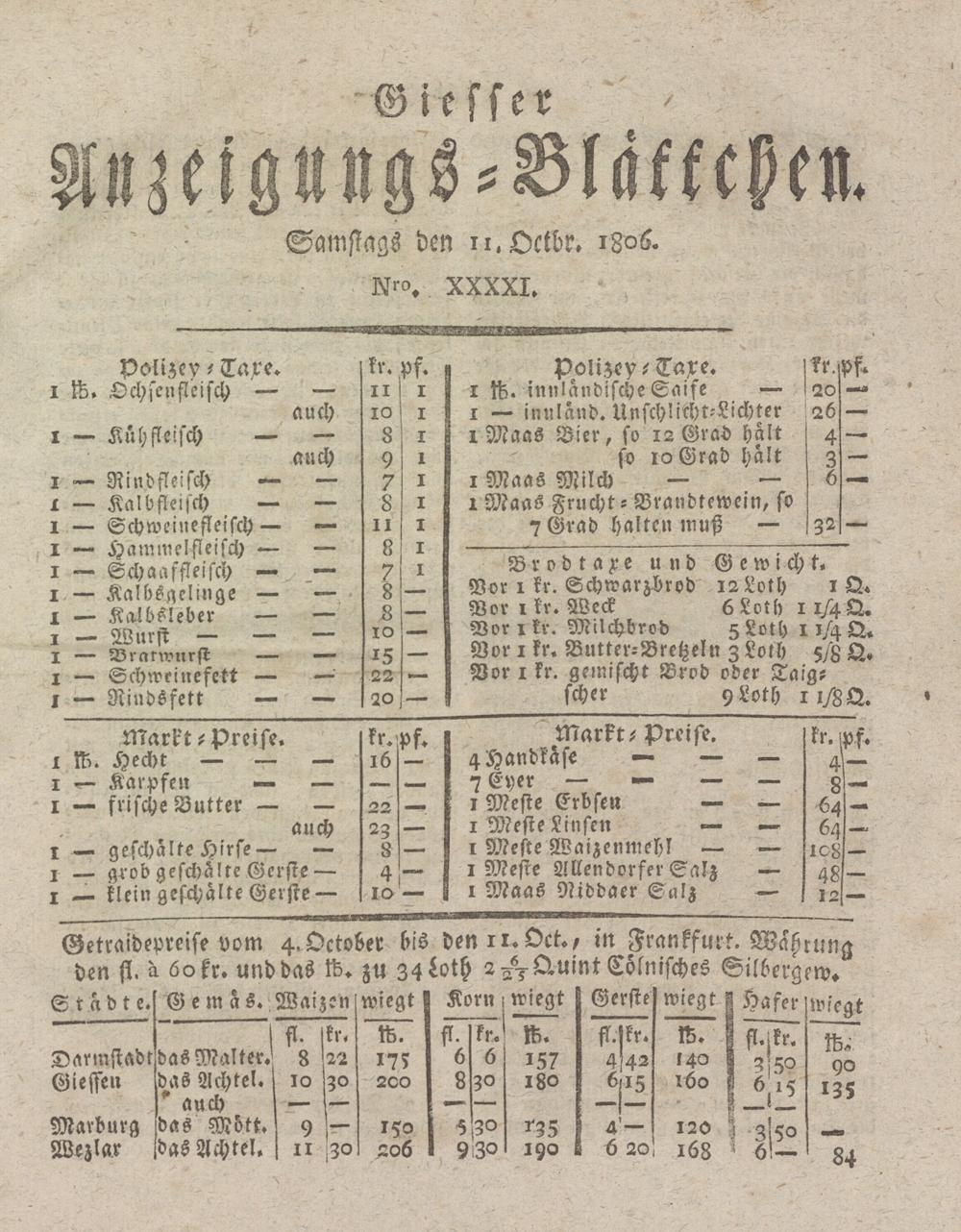 Giesser Anzeigeblatt. 1800-1839