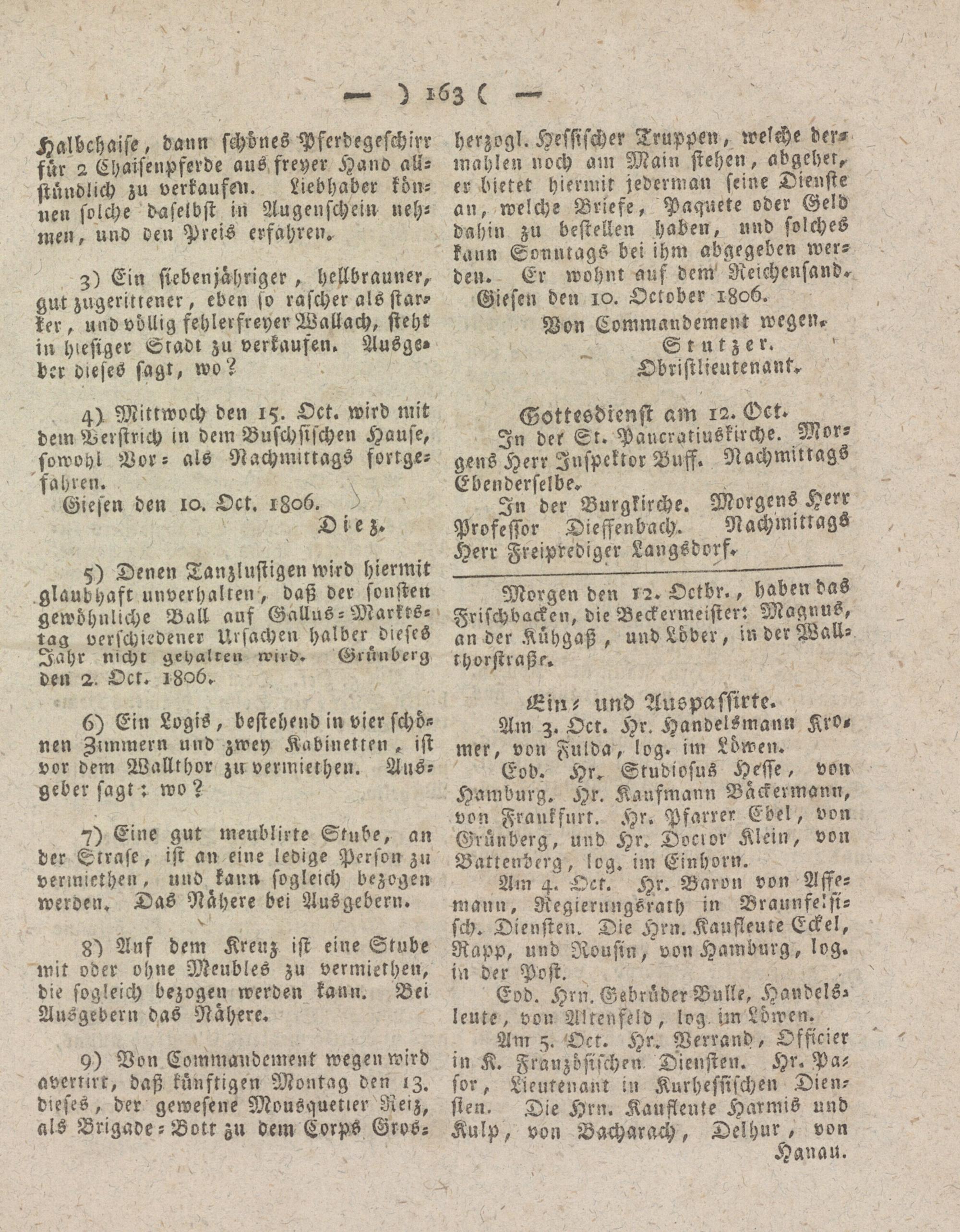 Giesser Anzeigeblatt. 1800-1839