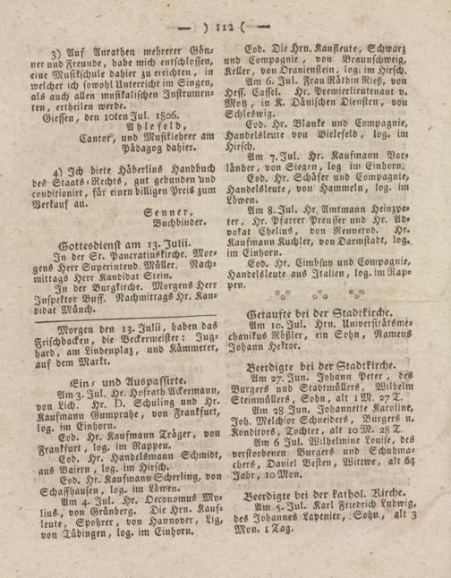 Giesser Anzeigeblatt. 1800-1839