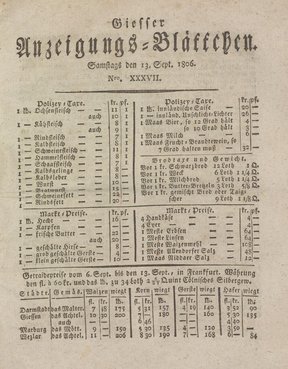 Giesser Anzeigeblatt. 1800-1839