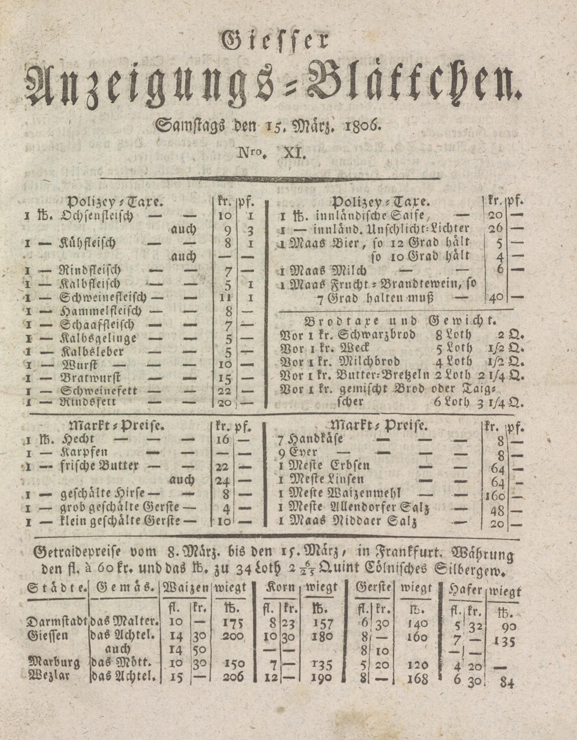 Giesser Anzeigeblatt. 1800-1839