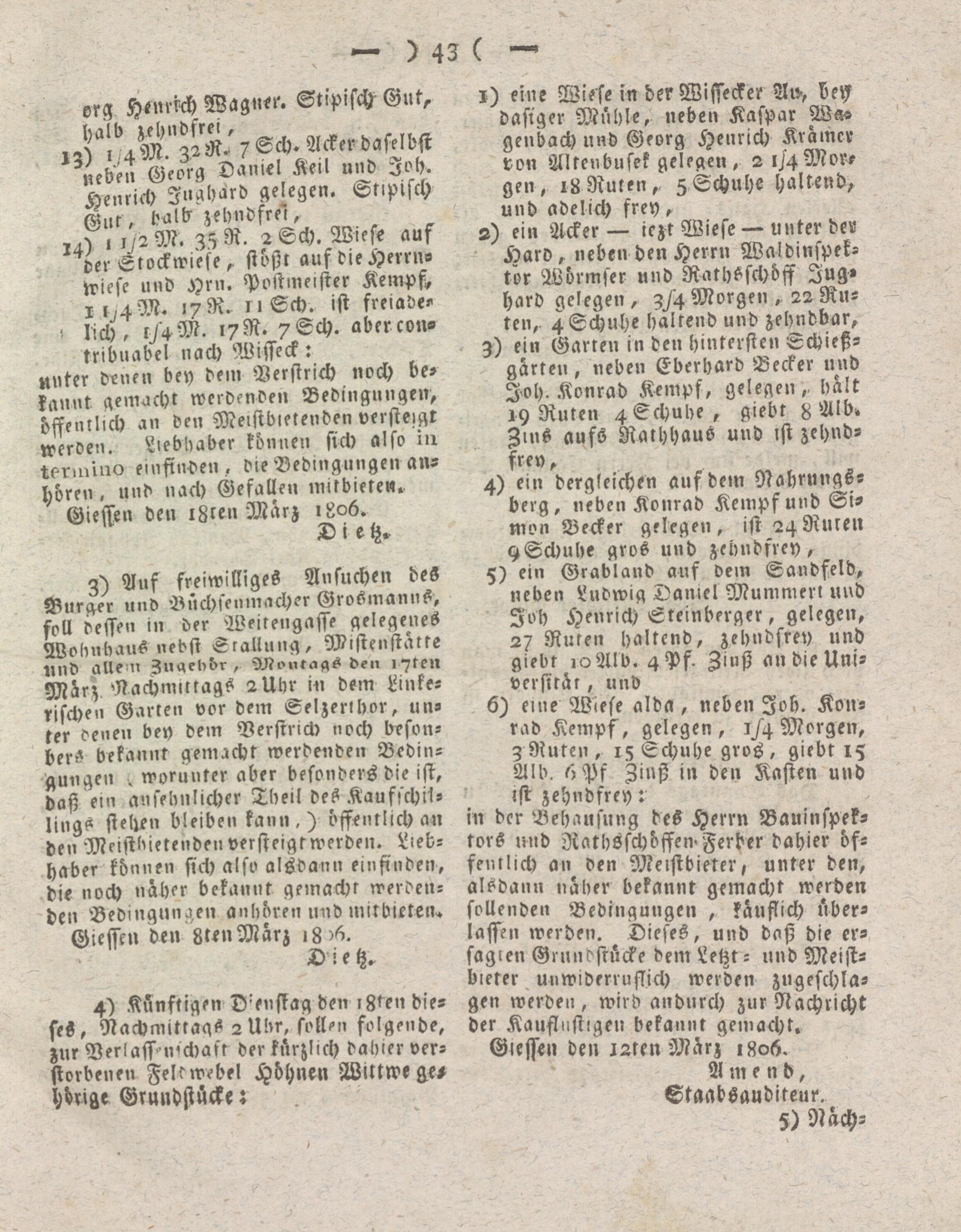 Giesser Anzeigeblatt. 1800-1839