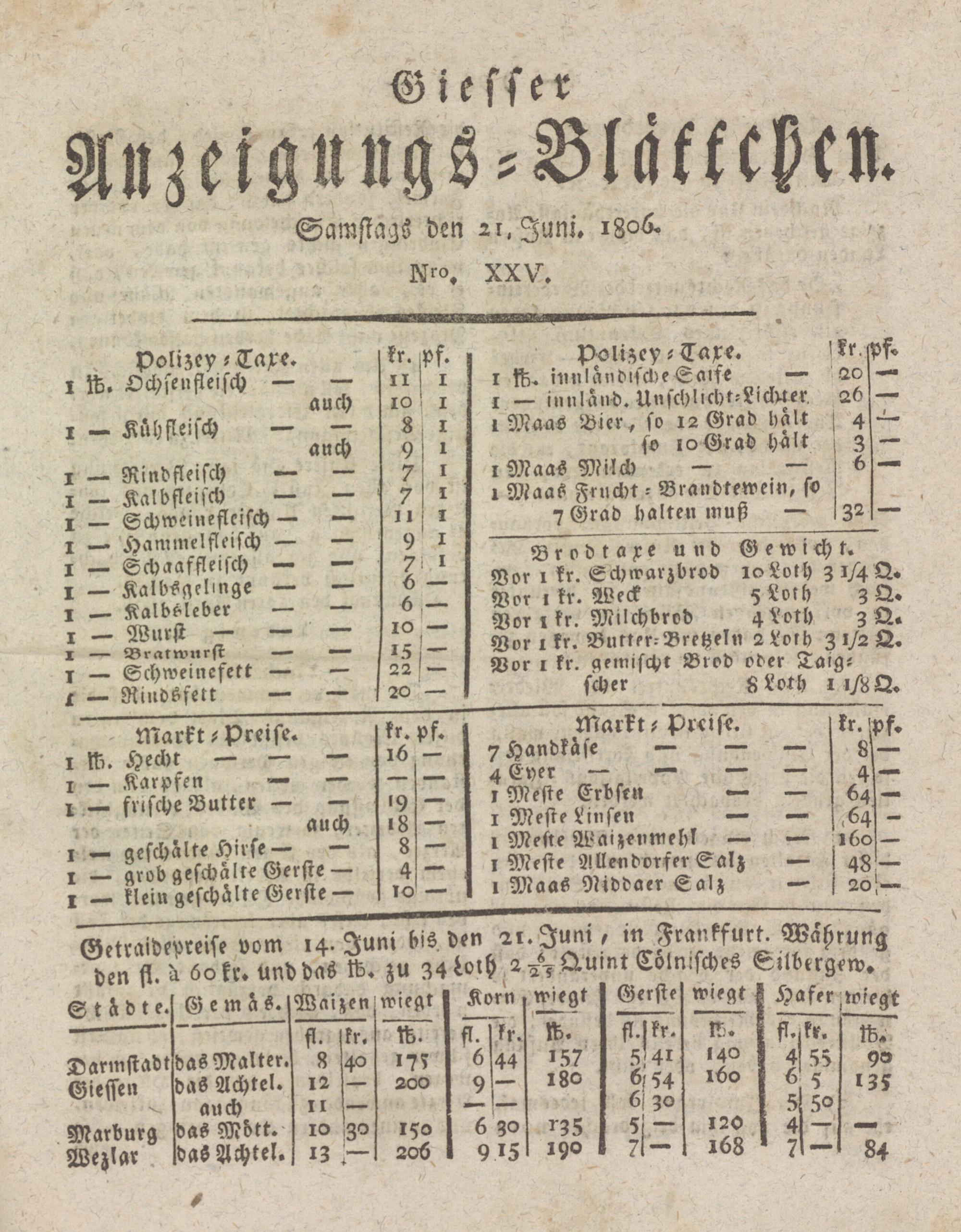 Giesser Anzeigeblatt. 1800-1839