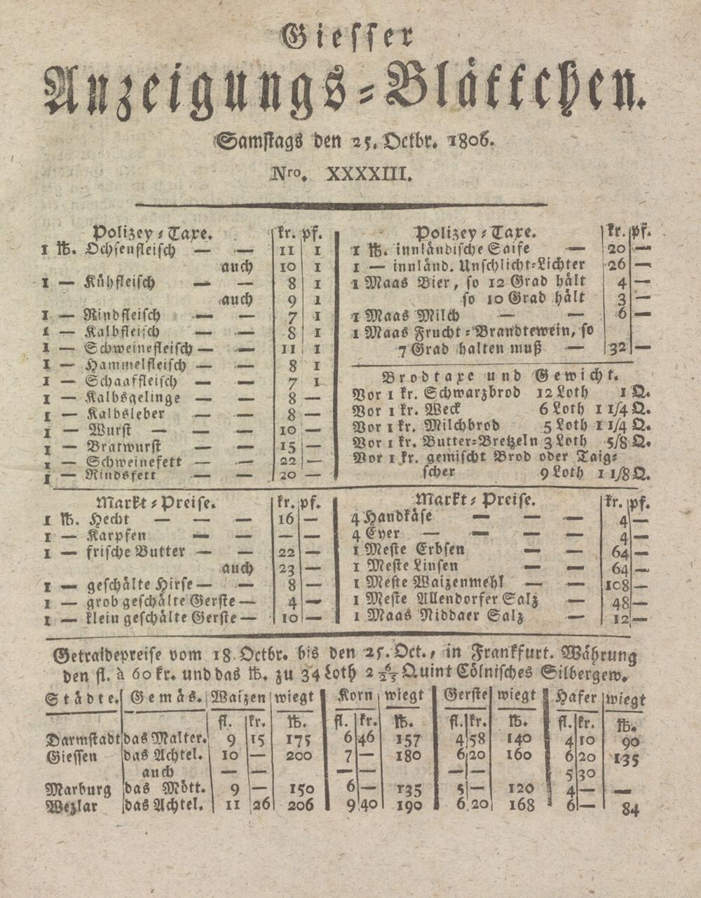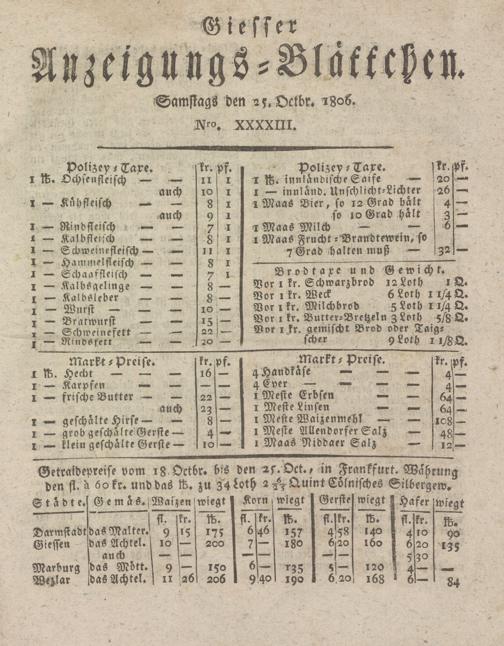 Giesser Anzeigeblatt. 1800-1839