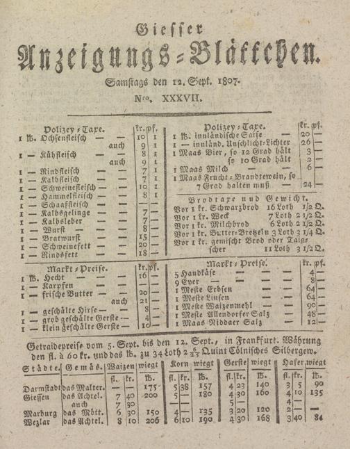 Giesser Anzeigeblatt. 1800-1839