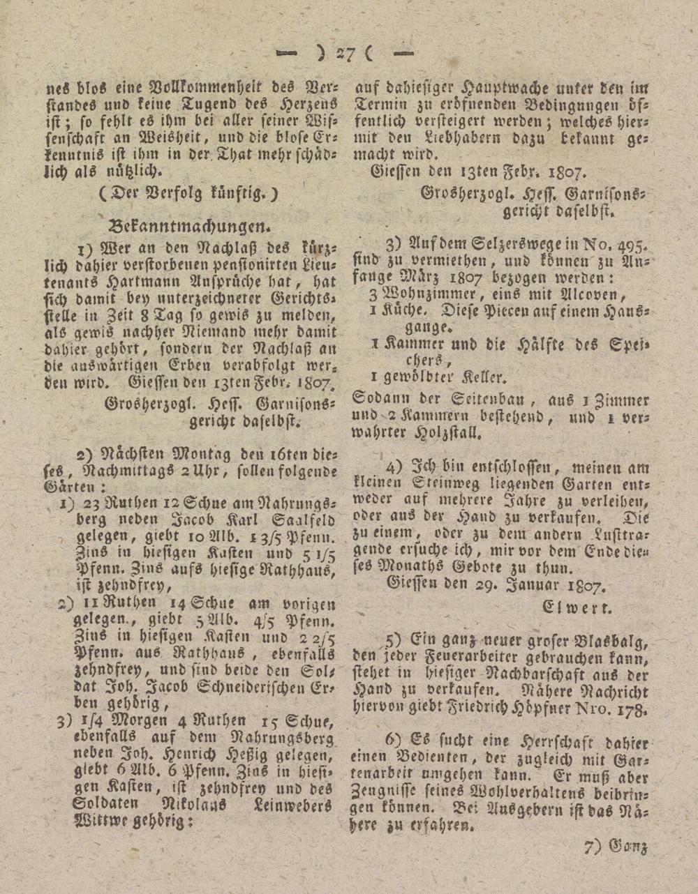 Giesser Anzeigeblatt. 1800-1839
