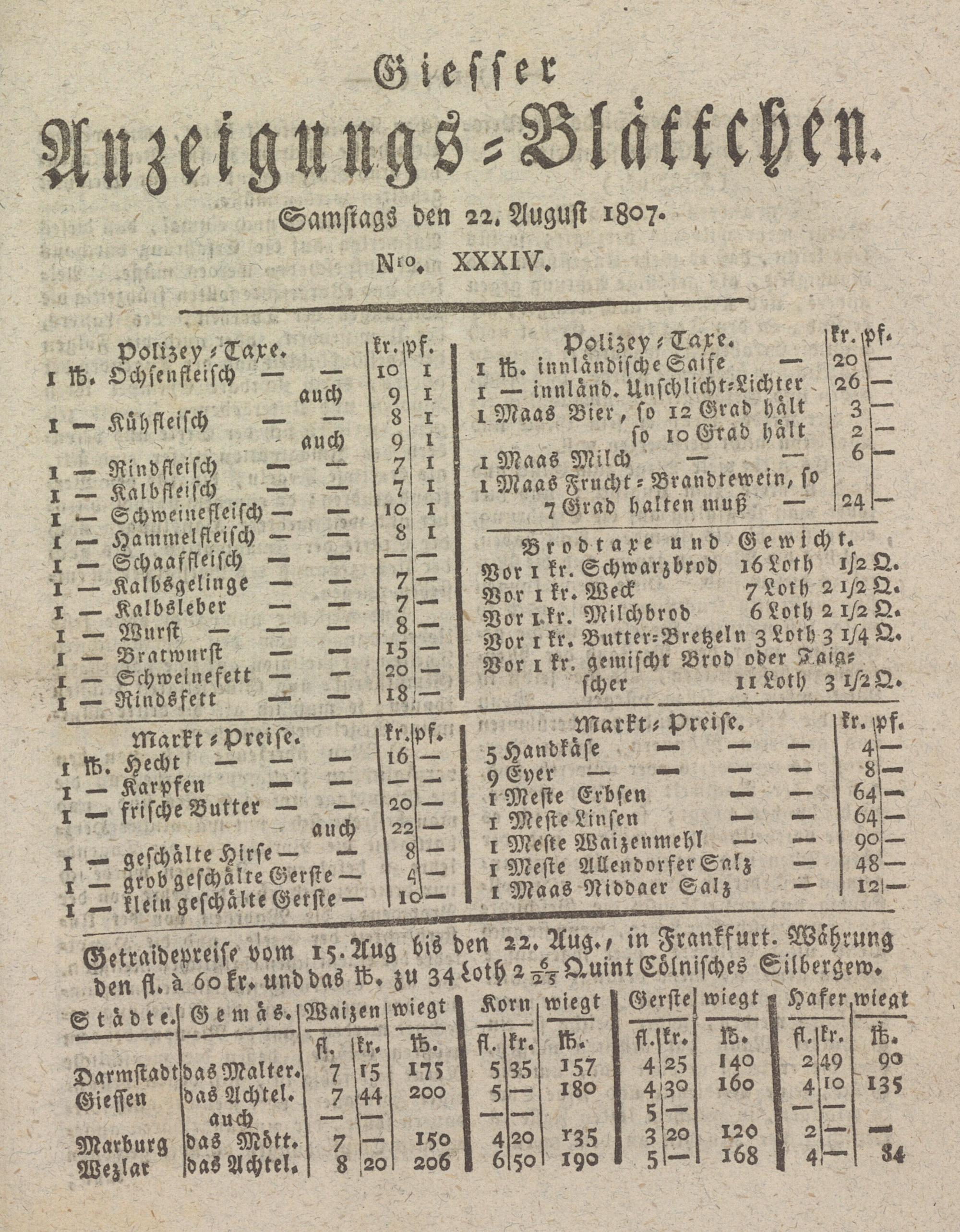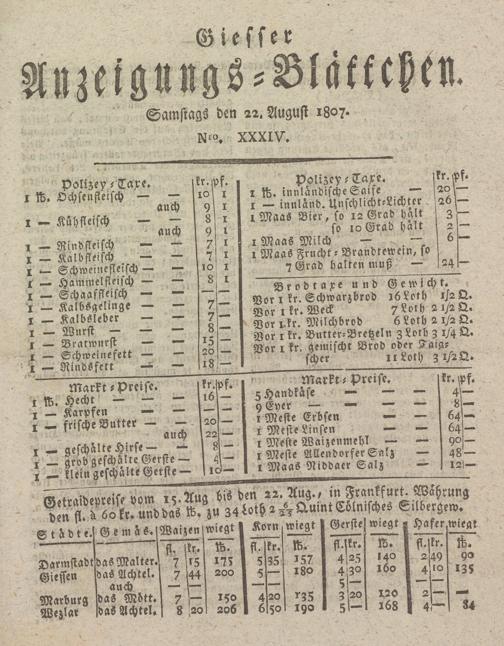 Giesser Anzeigeblatt. 1800-1839