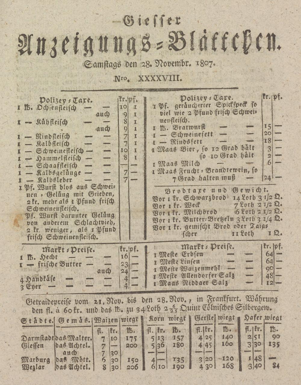 Giesser Anzeigeblatt. 1800-1839