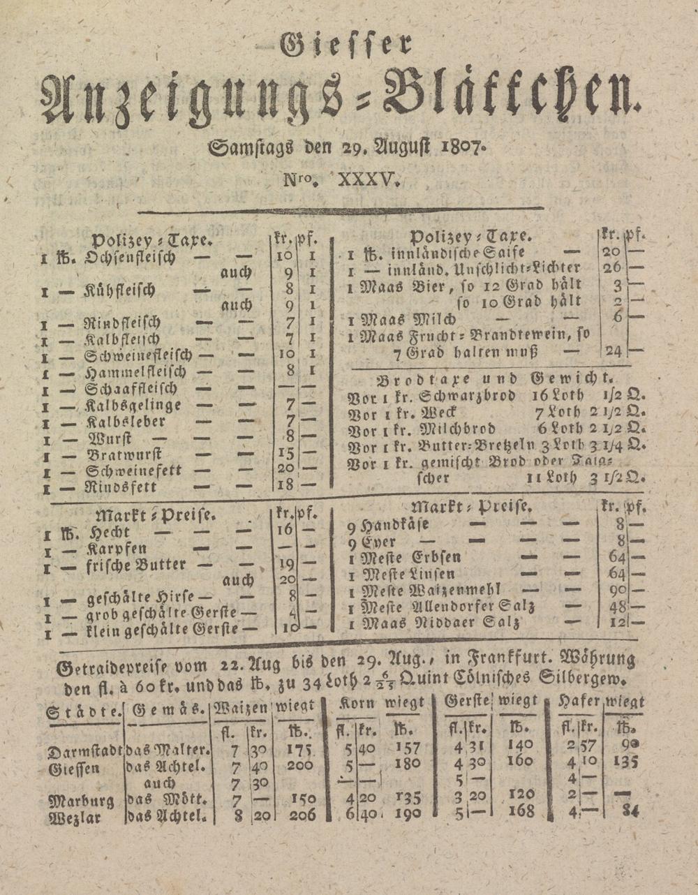 Giesser Anzeigeblatt. 1800-1839
