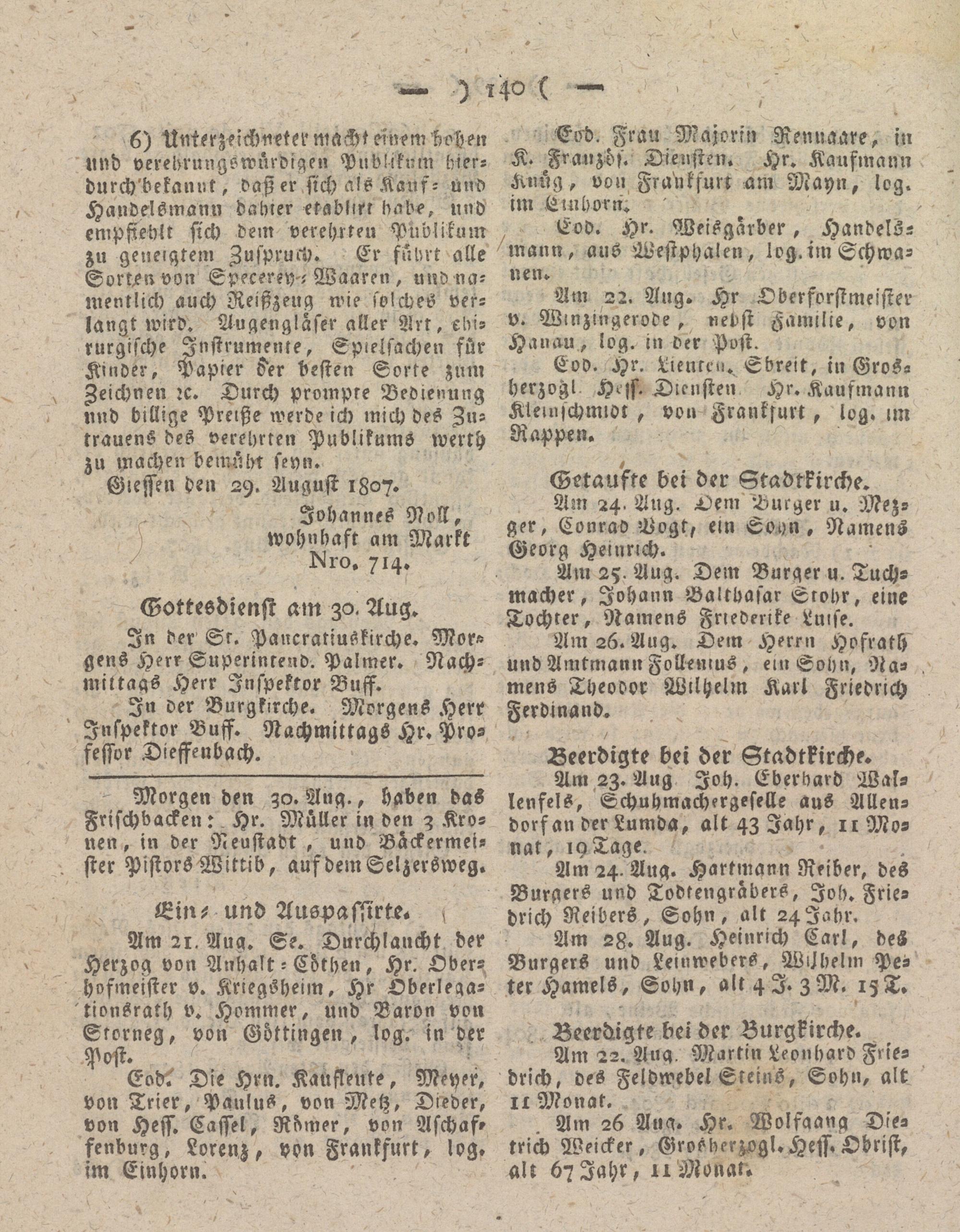 Giesser Anzeigeblatt. 1800-1839