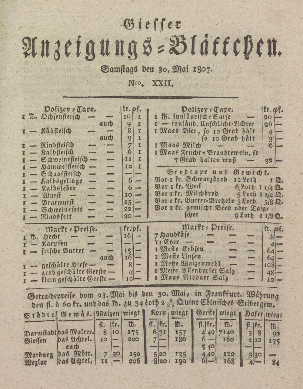 Giesser Anzeigeblatt. 1800-1839