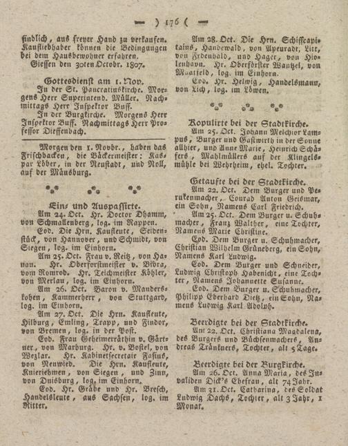 Giesser Anzeigeblatt. 1800-1839