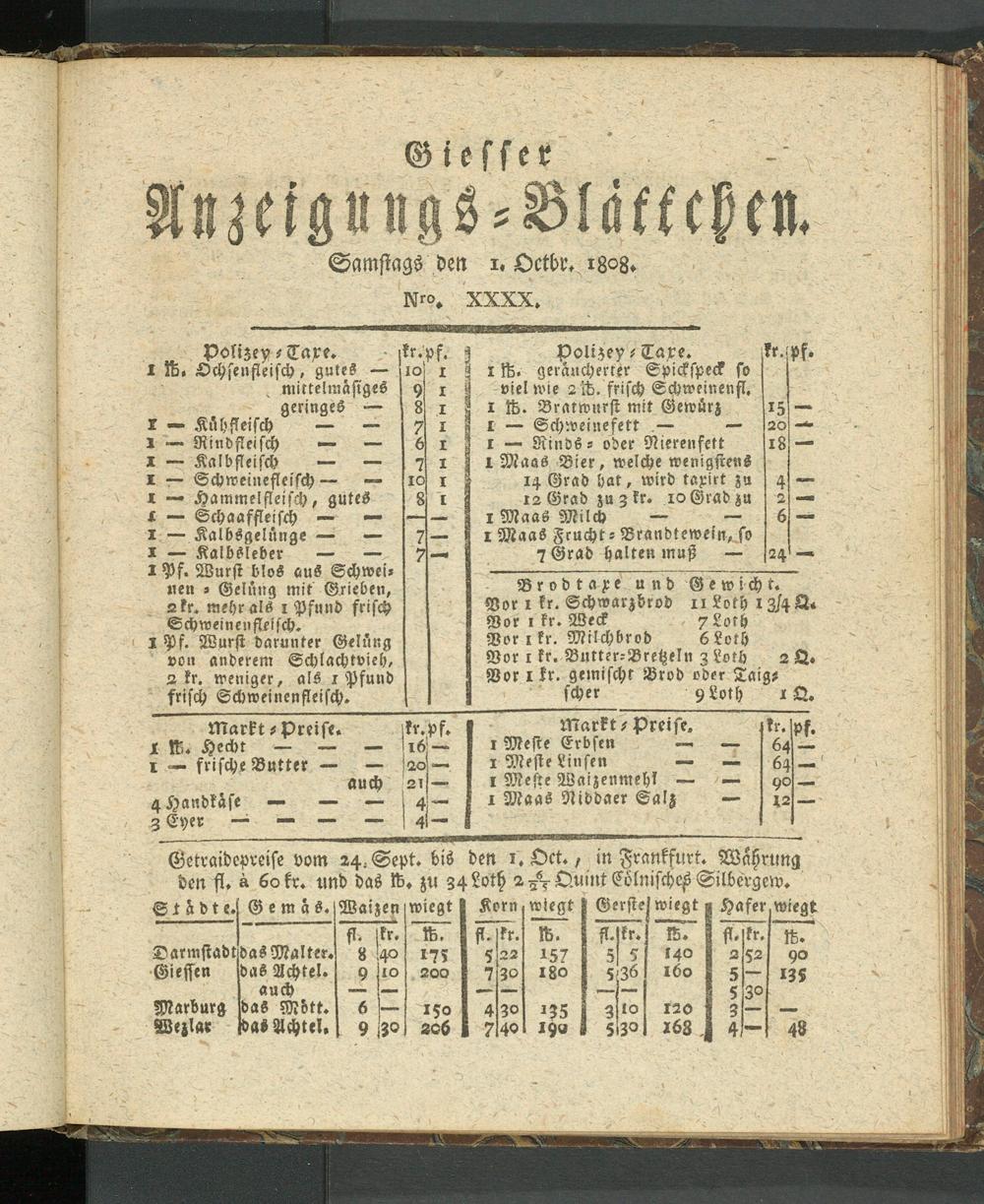 Giesser Anzeigeblatt. 1800-1839