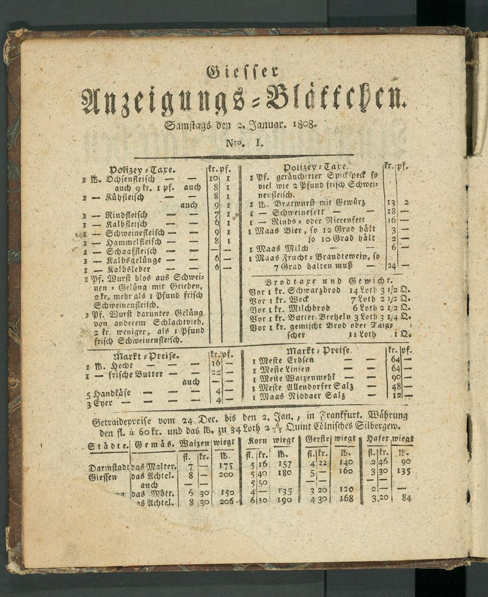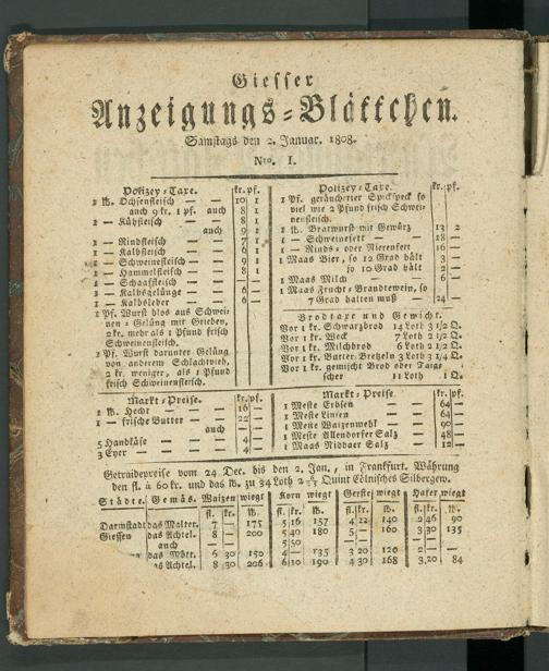 Giesser Anzeigeblatt. 1800-1839