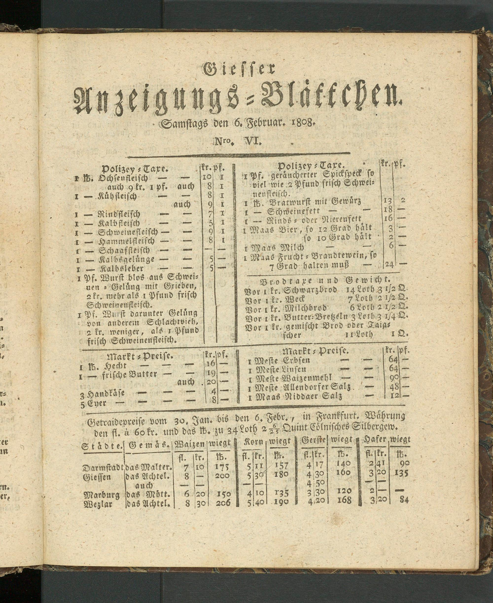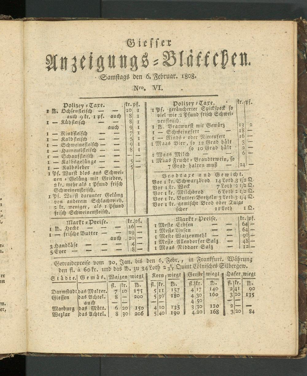Giesser Anzeigeblatt. 1800-1839