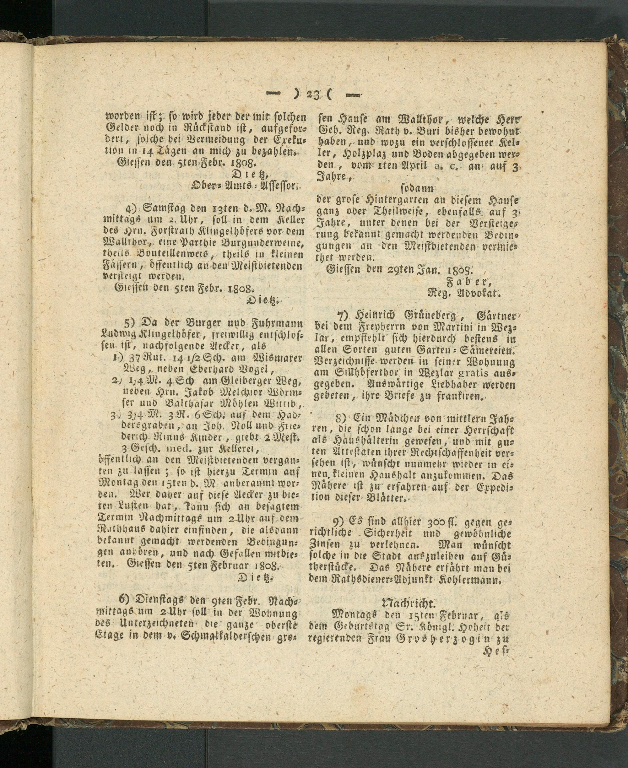 Giesser Anzeigeblatt. 1800-1839